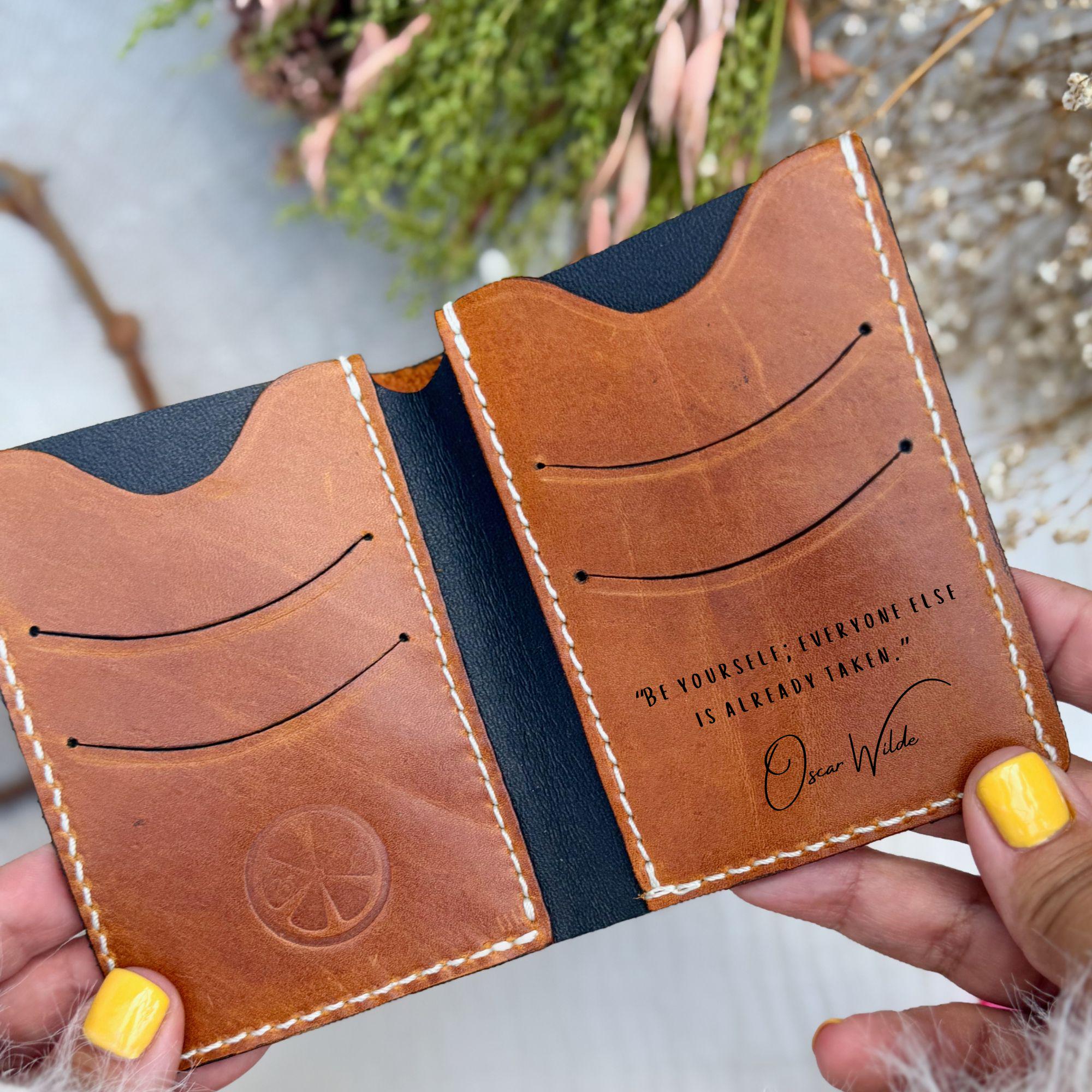 Each leather card wallet is made from authentic leather, so natural variations in tone, grain, and color make every piece one of a kind.