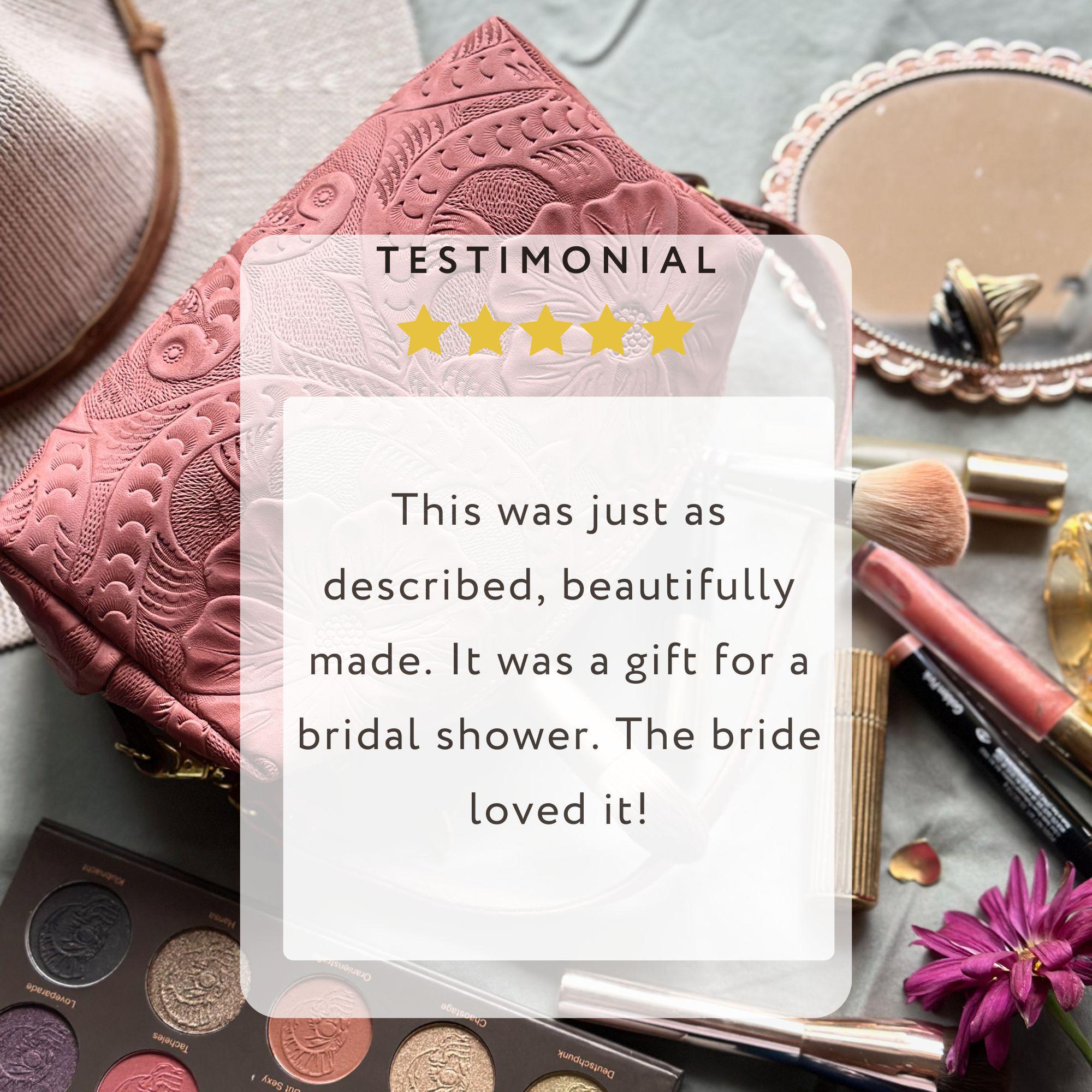 Leather Makeup Bag | Floral Cosmetic Pouch | Personalized Bridesmaid Gift