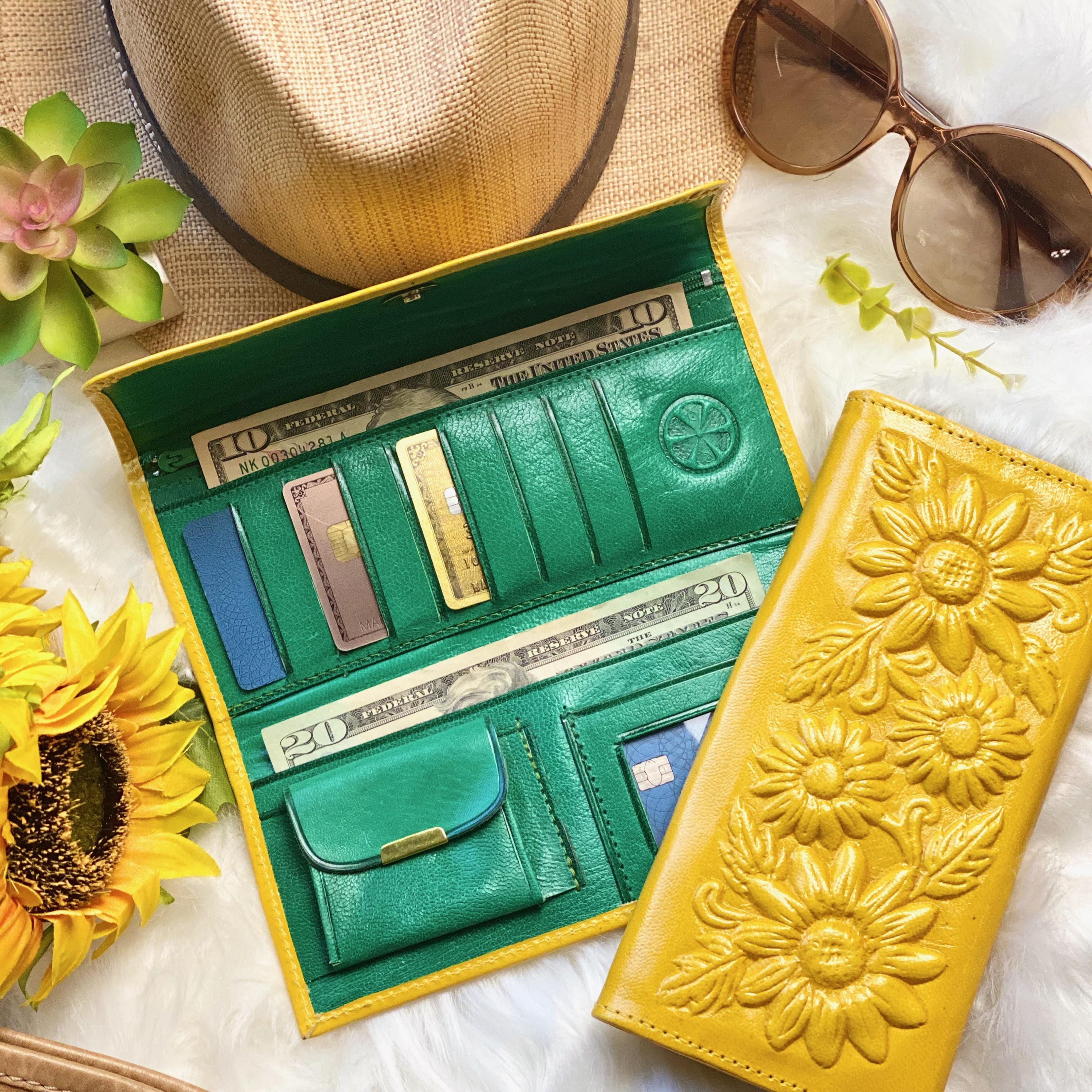 Looking for a wallet that’s as joyful as it is functional? This sunflower-embossed leather wallet is handcrafted with love and made from authentic, sustainable leather.