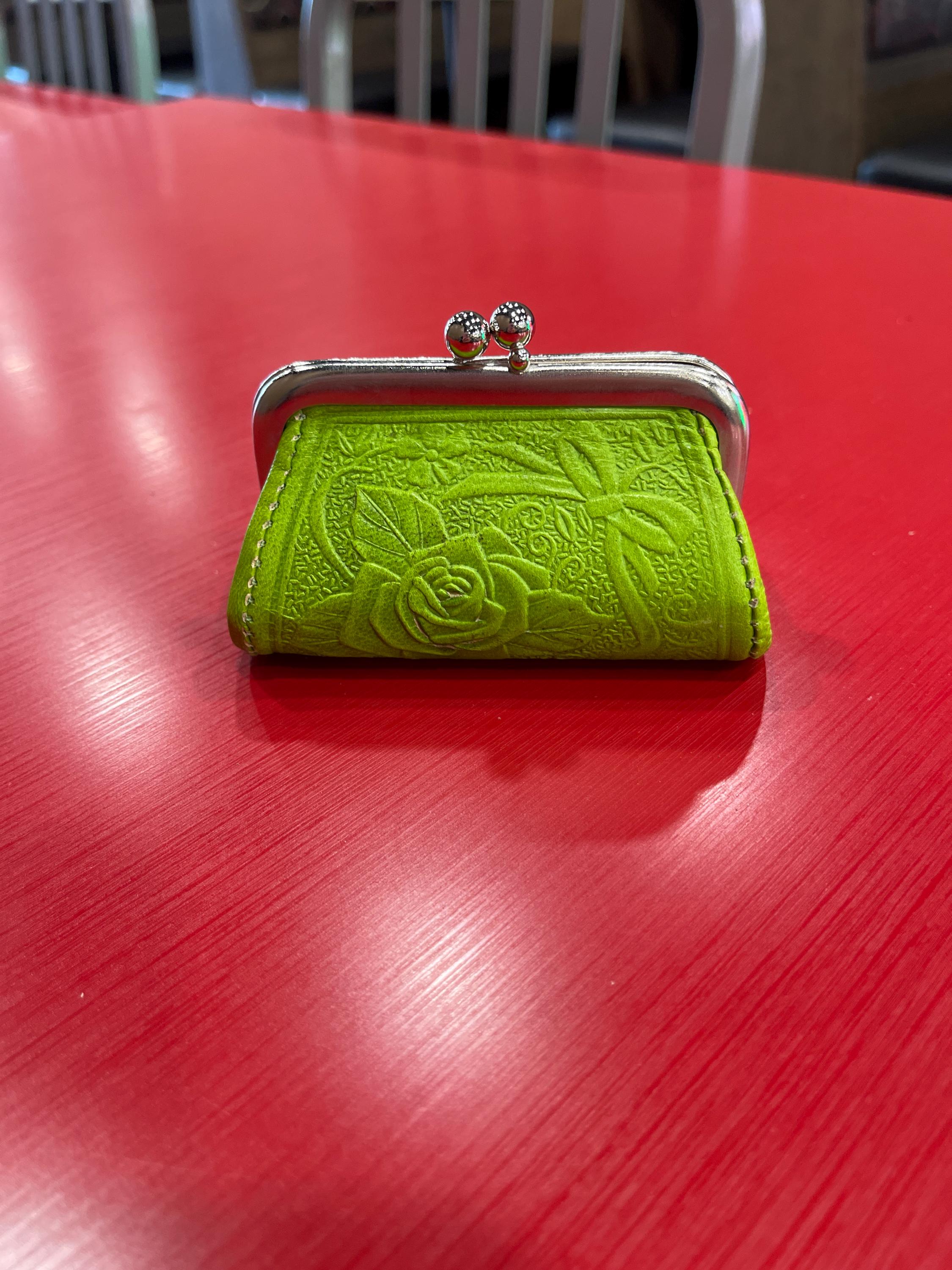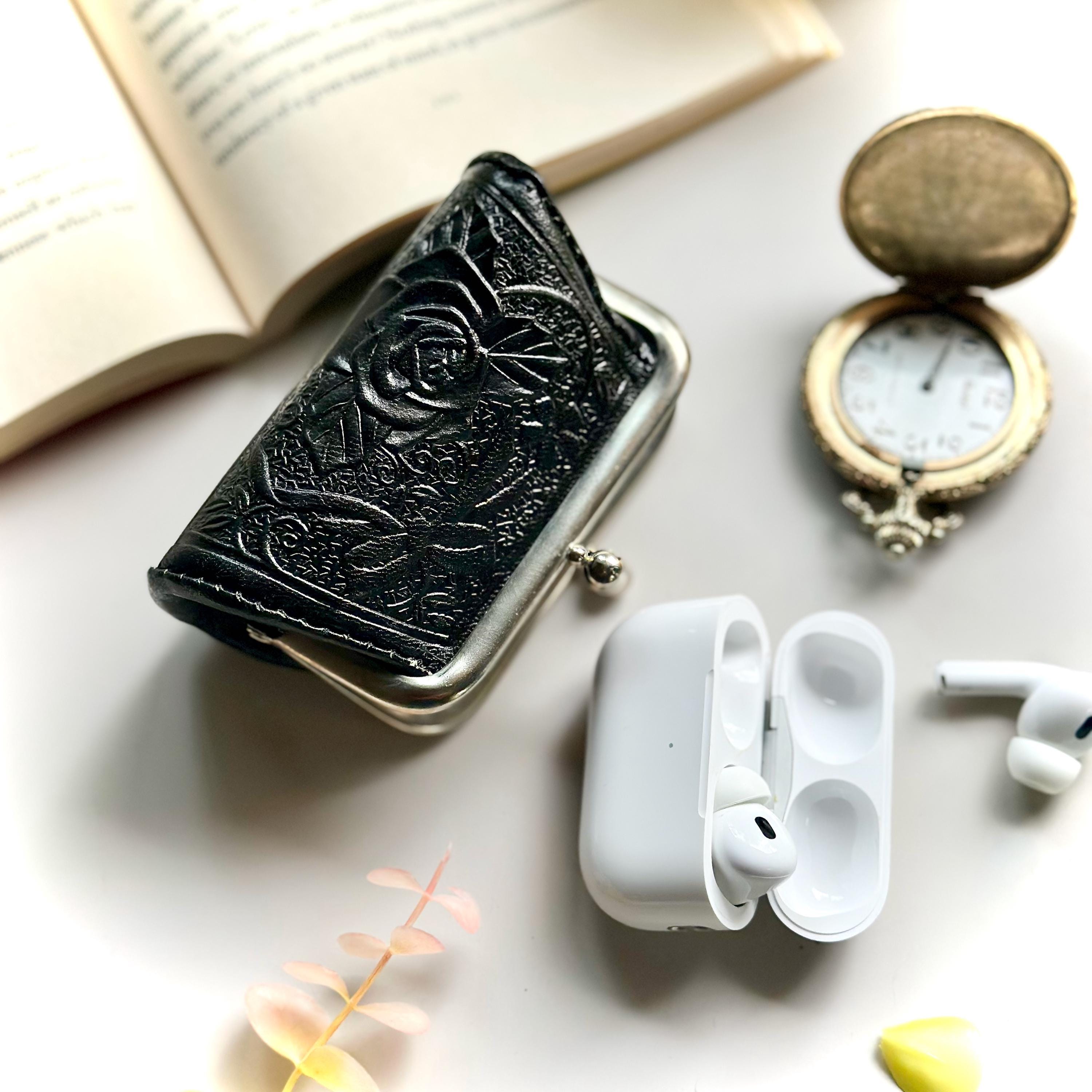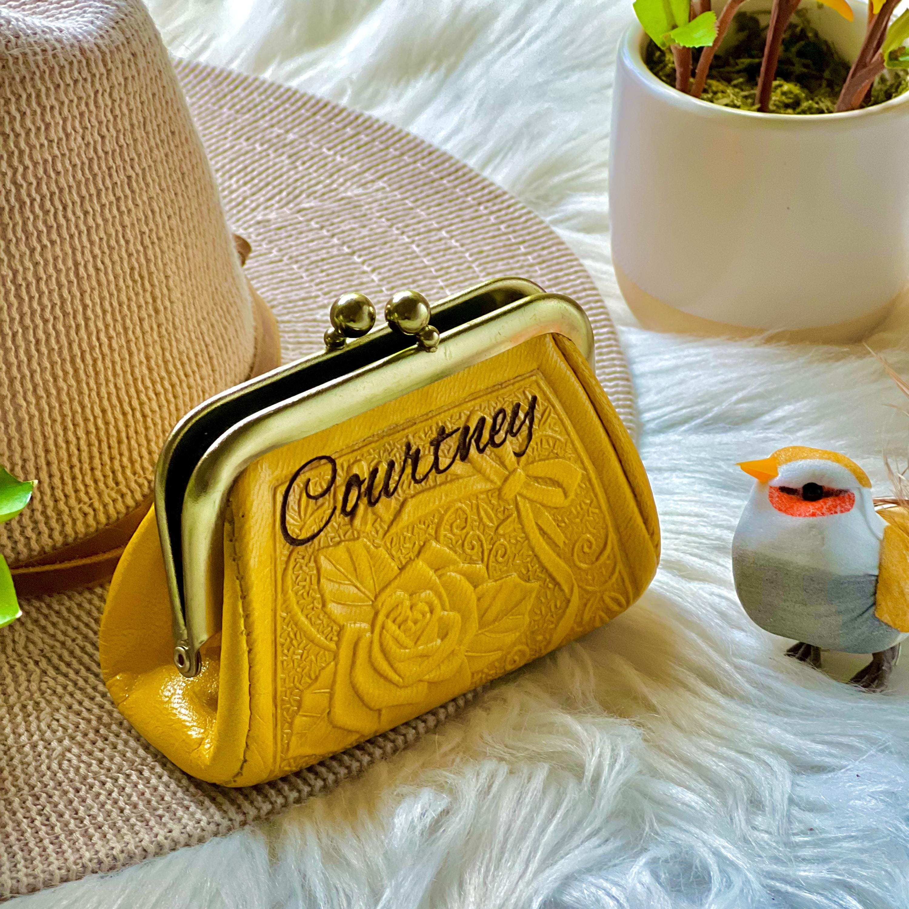 This vintage-style leather coin purse is handcrafted one at a time, featuring a delicate rose motif and classic kisslock clasp for a touch of retro elegance. Compact yet practical, it’s perfect for storing coins, jewelry, or small essentials- and makes a thoughtful gift for mom or grandma.