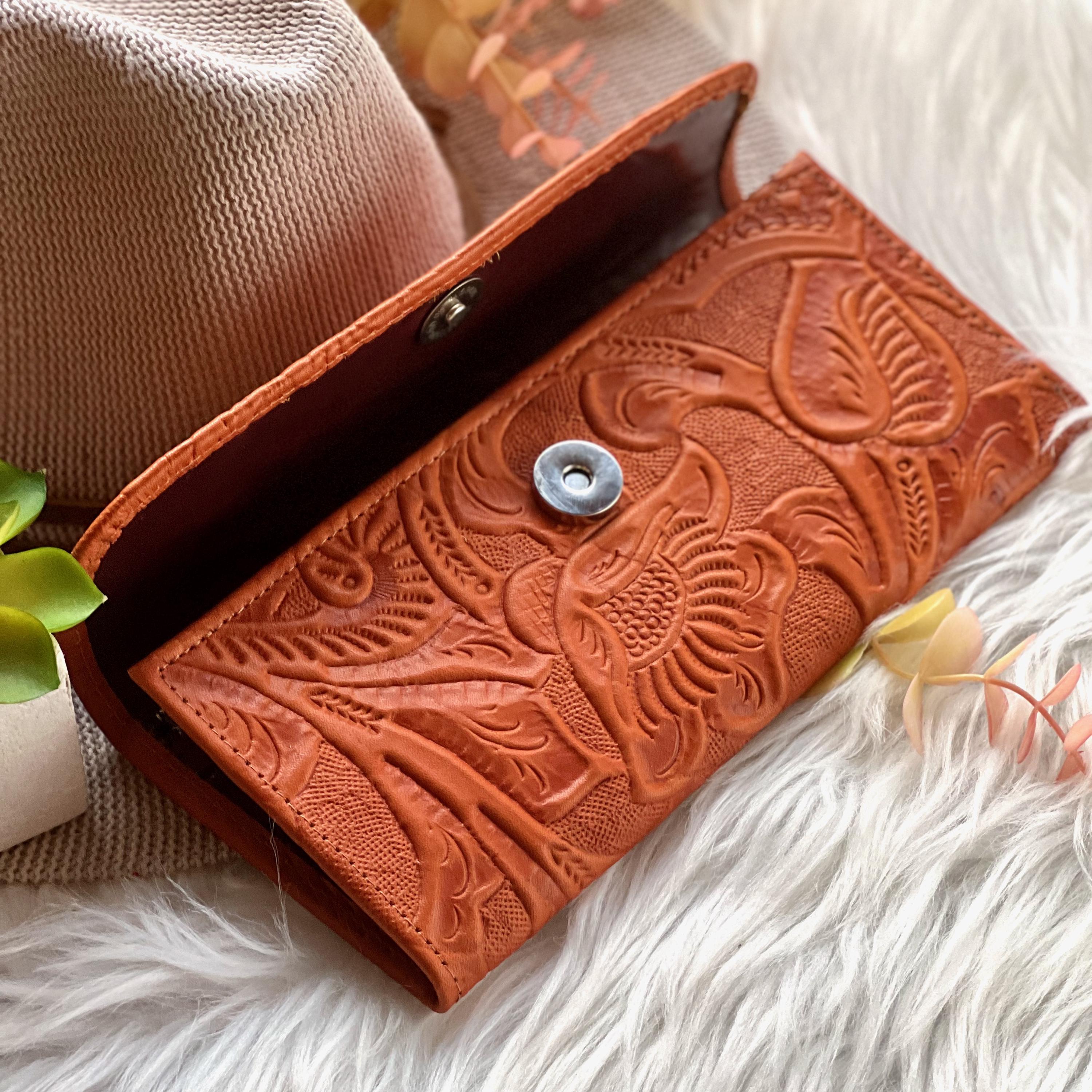 This floral embossed leather wallet for women is handcrafted one at a time from sustainable leather by artisans with generations of leather-working experience. Designed to be slim yet functional, it’s a soft leather wallet that combines everyday practicality with meaningful, handmade detail- perfect as a personalized gift for her or a beautiful upgrade for yourself.