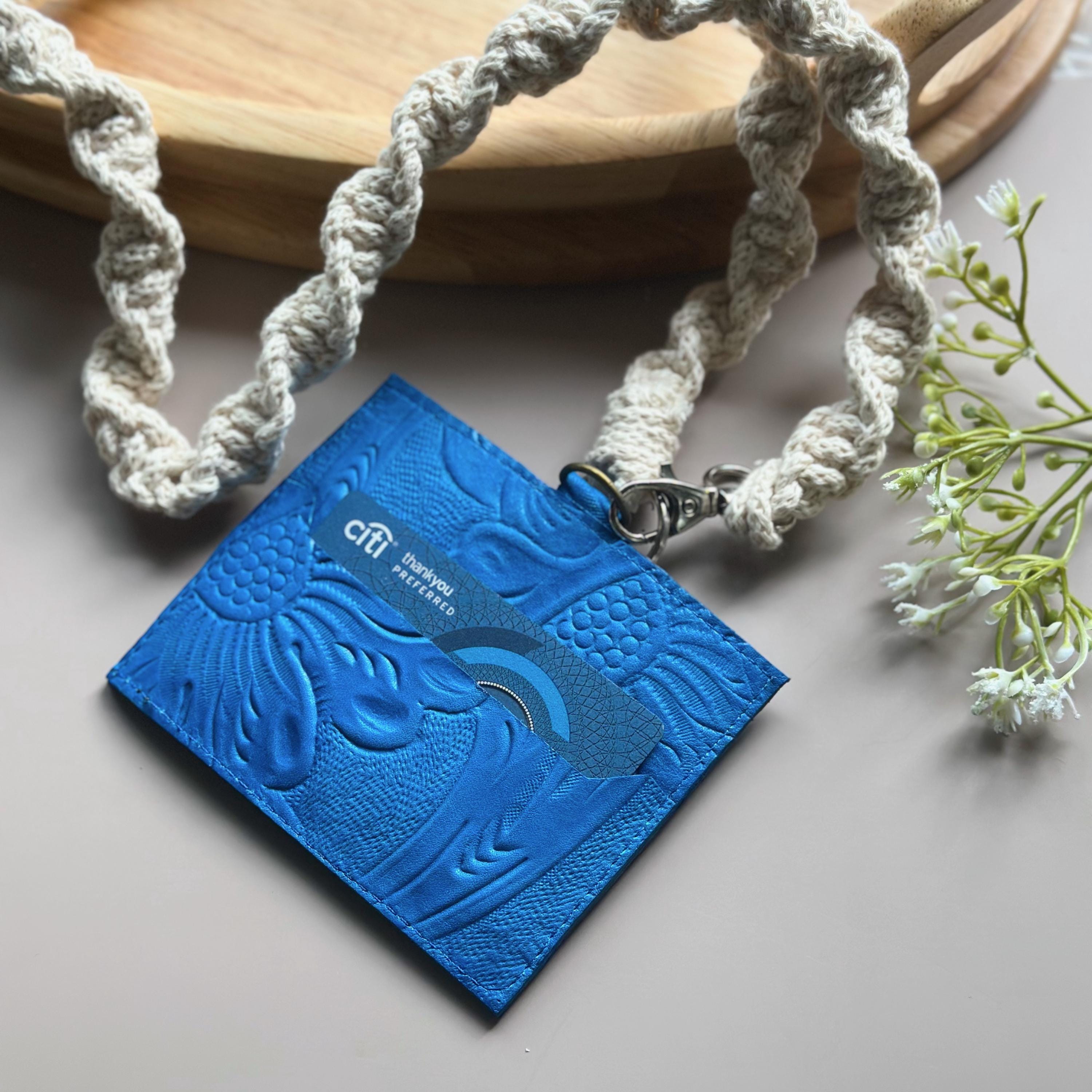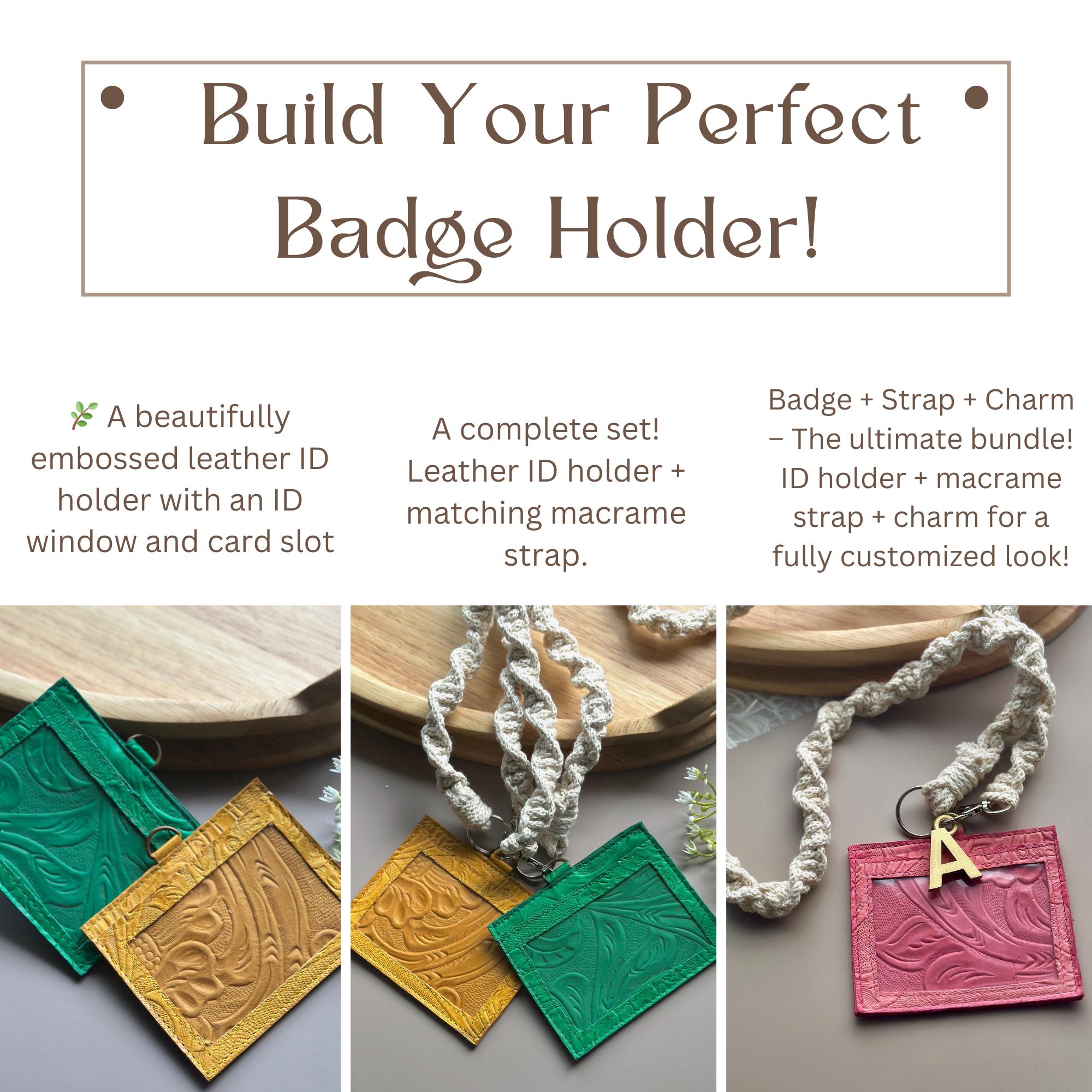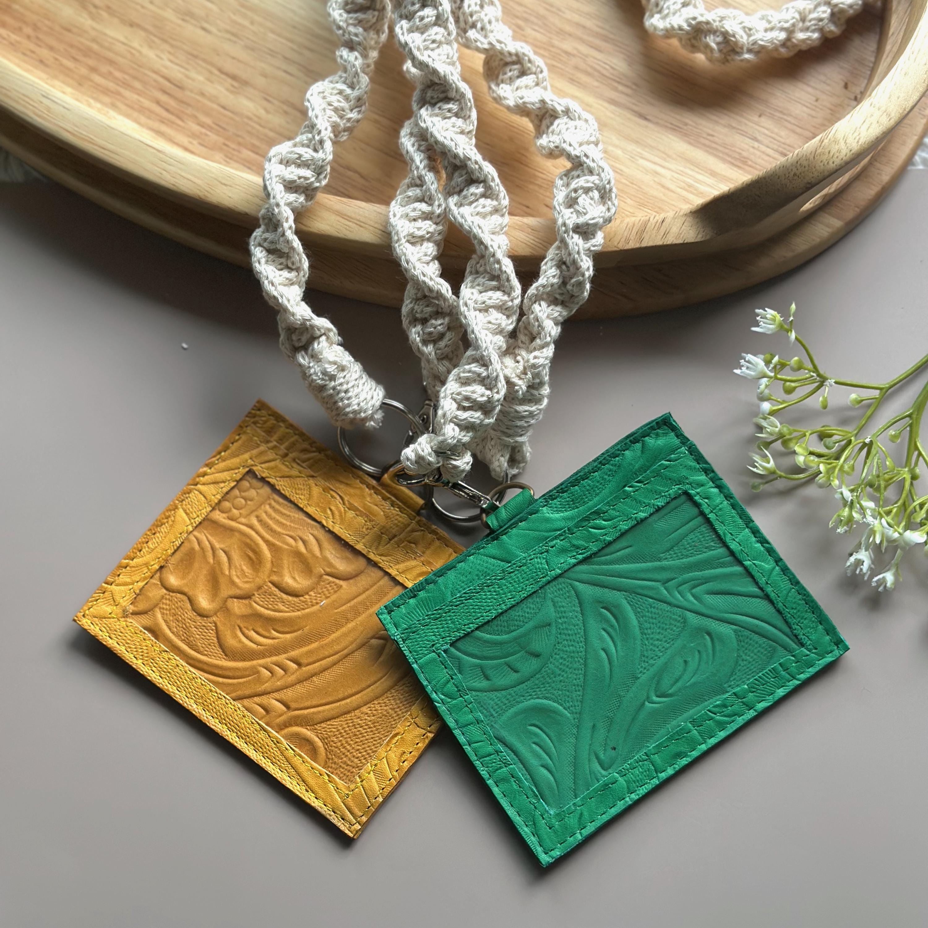đż Handmade Floral Leather ID Badge Holder with Macrame Lanyard