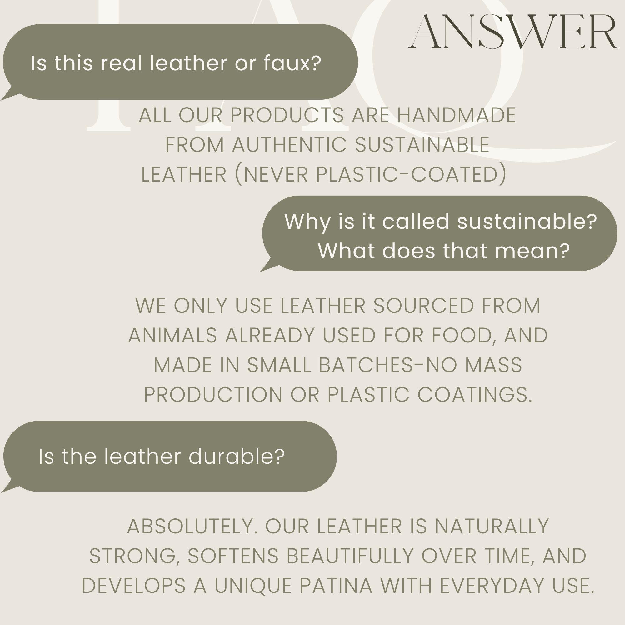• We use only sustainable, authentic leather