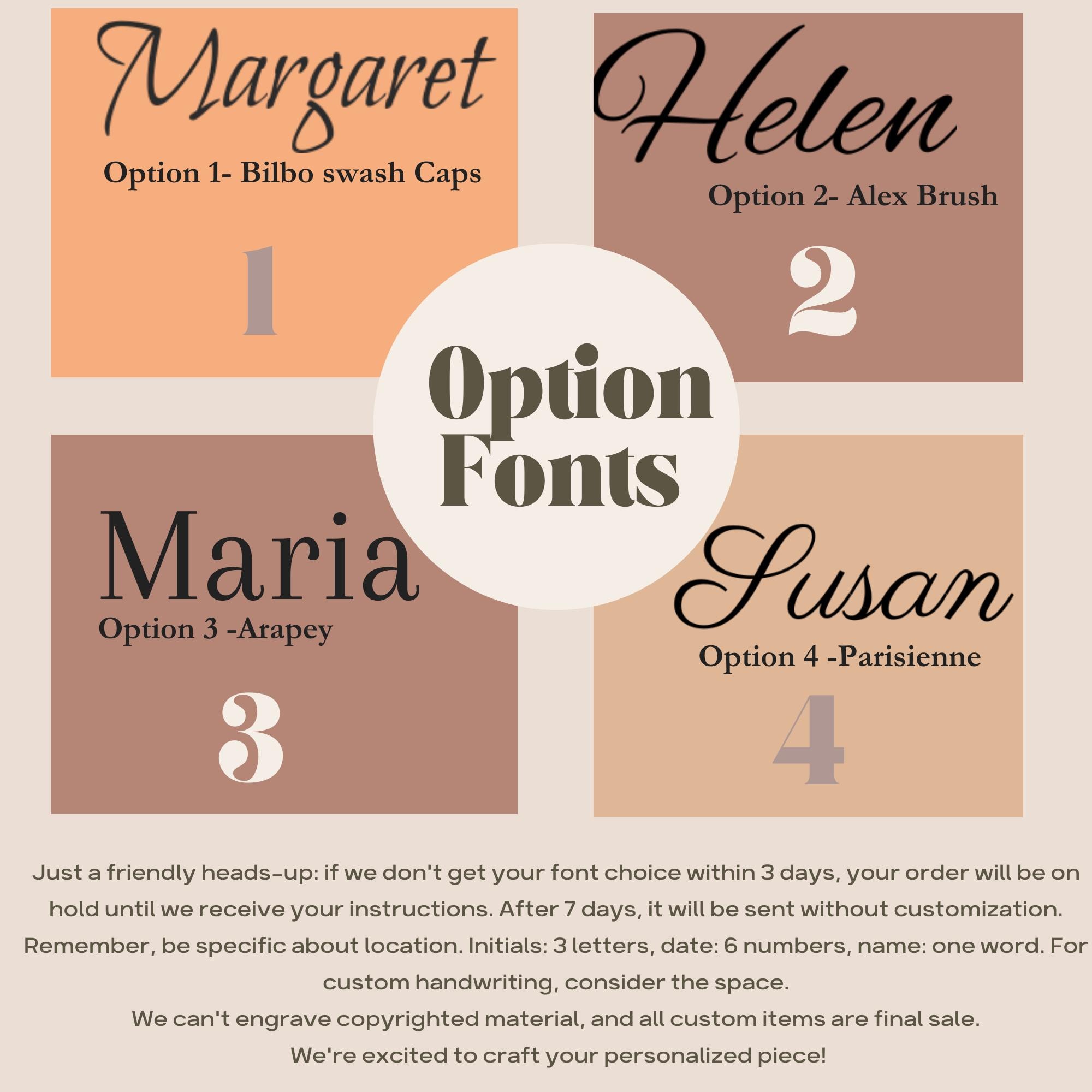 All personalized items are final sale and cannot be returned or exchanged. Please double-check spelling, dates, and any custom details before placing your order. If you have questions or need help adding a message, we’re happy to assist before engraving begins!