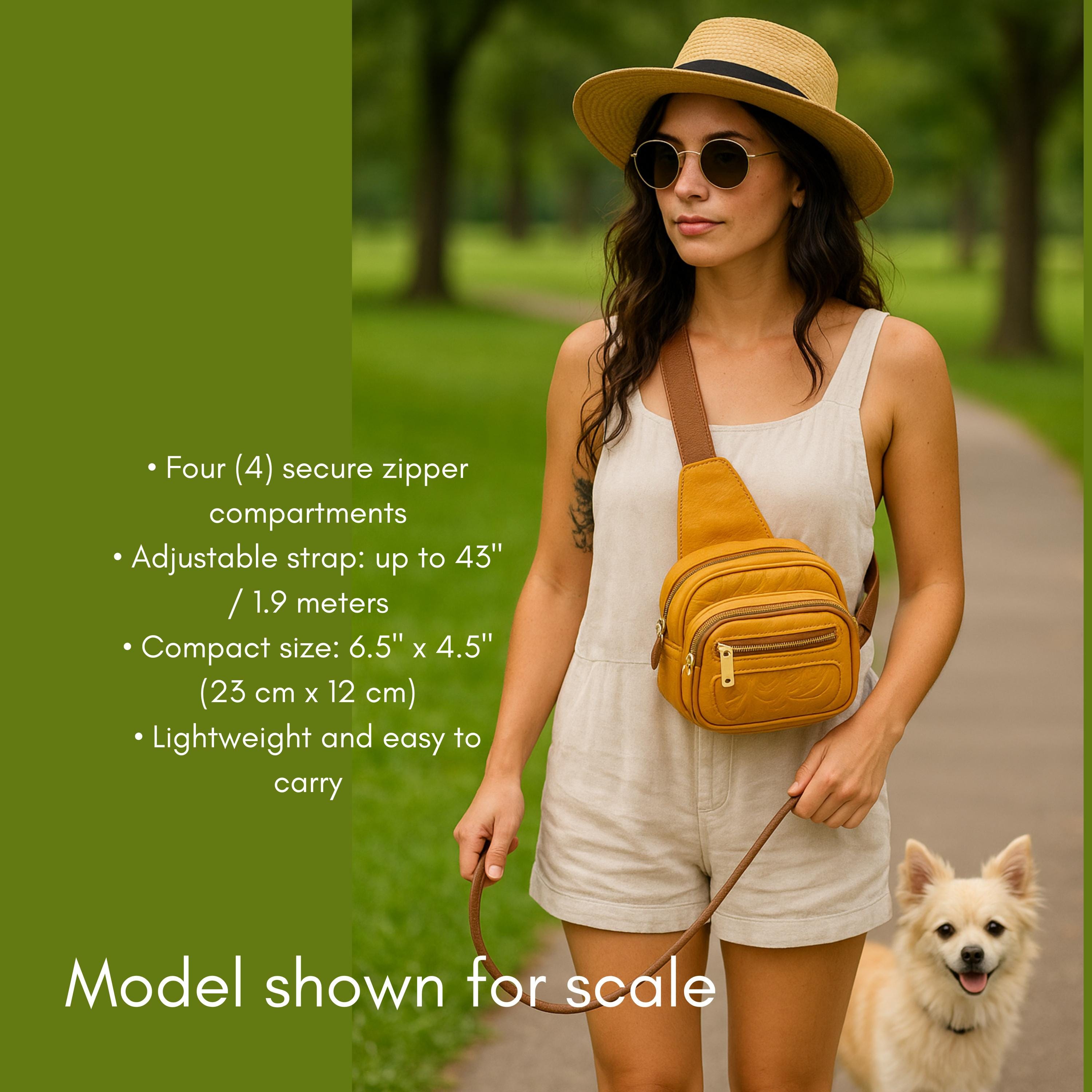 Chic leather chest bags & fanny packs for dog moms. Stylish, functional sling bags & crossbody pouches.