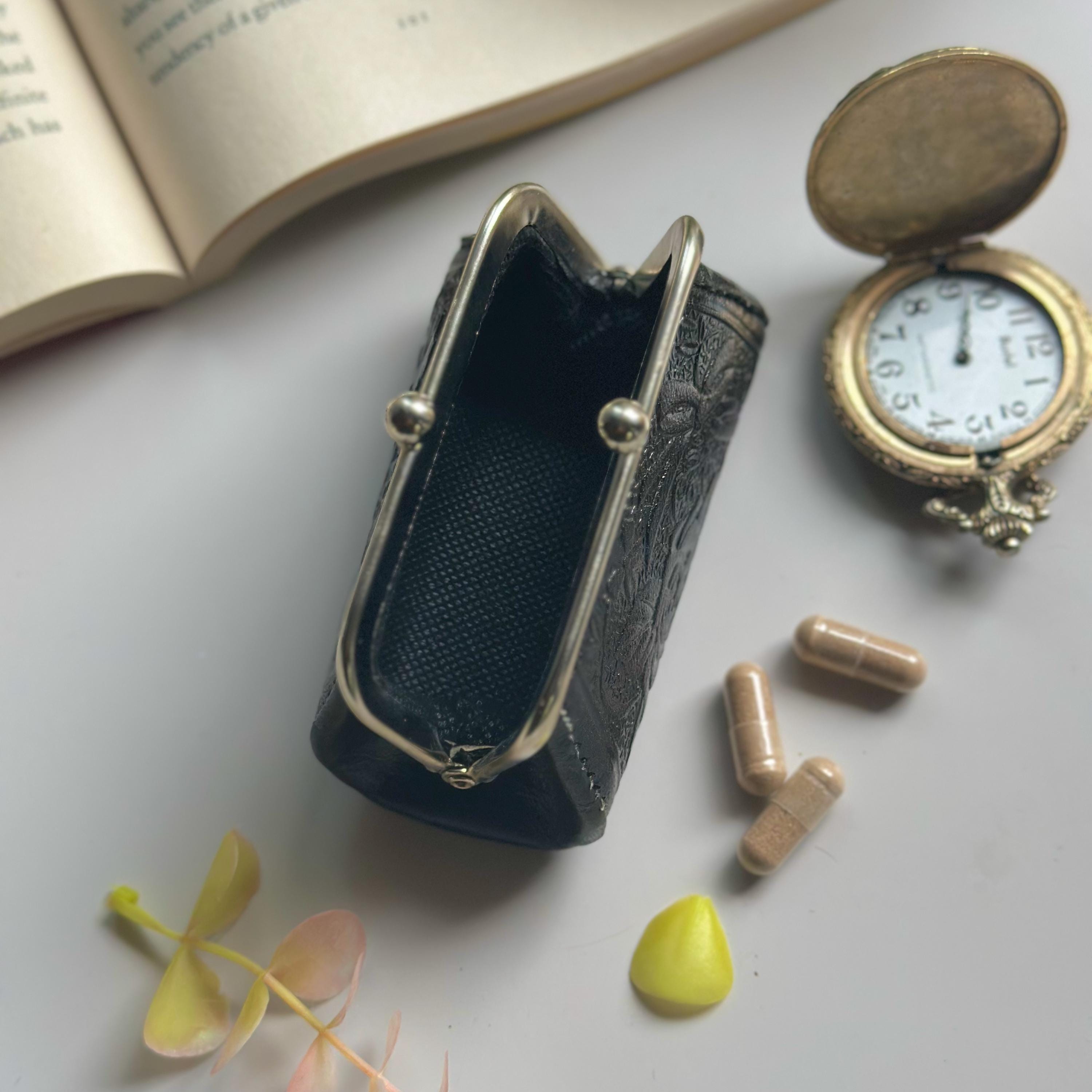 Our Rose Coin Case, the perfect vintage-inspired accessory to keep your coins organized! Made of high-quality leather, this mini purse is not only durable but also stylish. With its sleek design, it fits easily into any bag or pocket. Use it as a coin satchel, coin carrier, coin pouch, change purse, coin holder, coin caddy, coin container, or coin bag - the possibilities are endless! The Rose Coin Case is a must-have accessory for anyone who wants to keep their coins safe and organized. Shop now from Salylimonusa and add a touch of vintage charm to your everyday life!