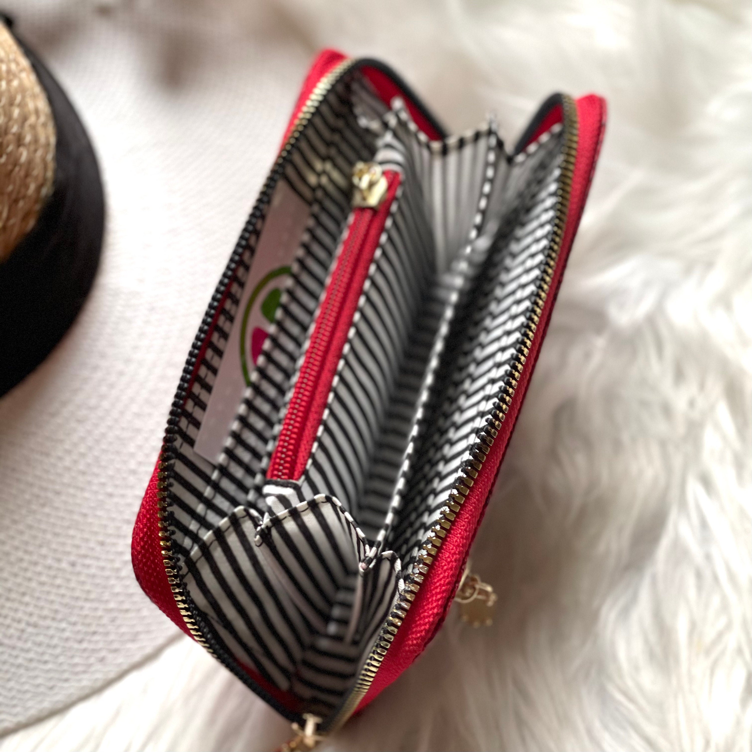 Featuring a vibrant red and green snake print design and a secure zip-around closure, this wallet is not only a fashion statement but also a highly practical companion. It comes with 6 card slots, a zipper coin pocket, and two bill compartments, ensuring you have ample space to organize your essentials neatly.