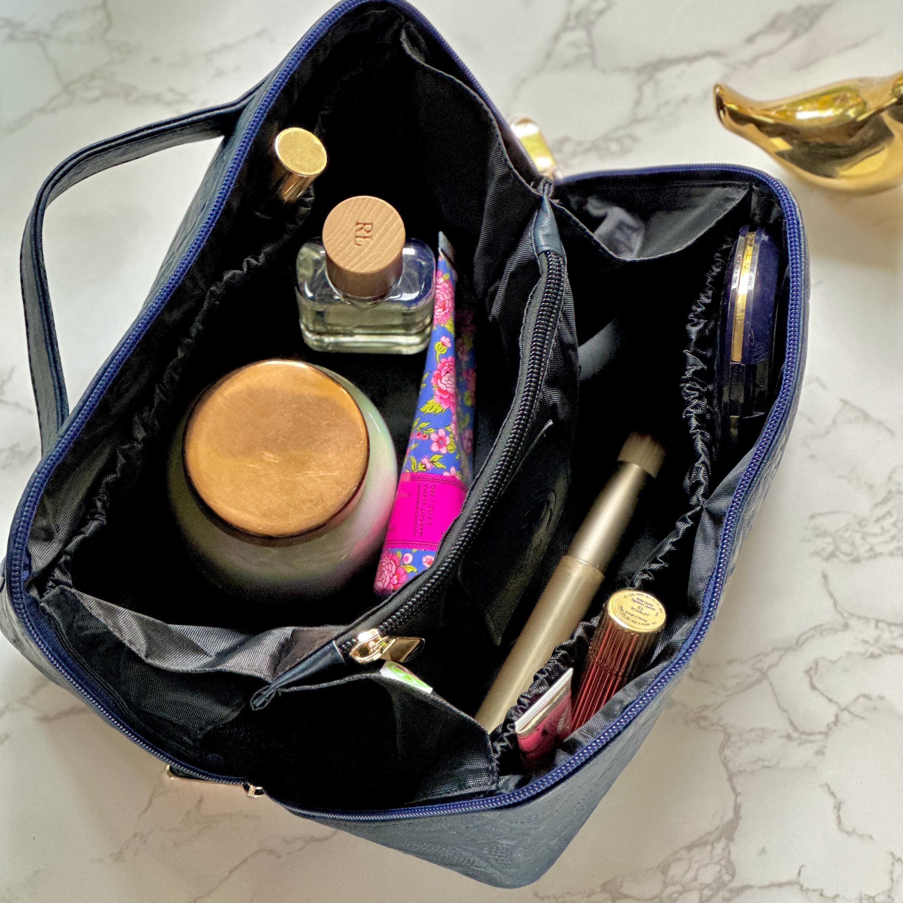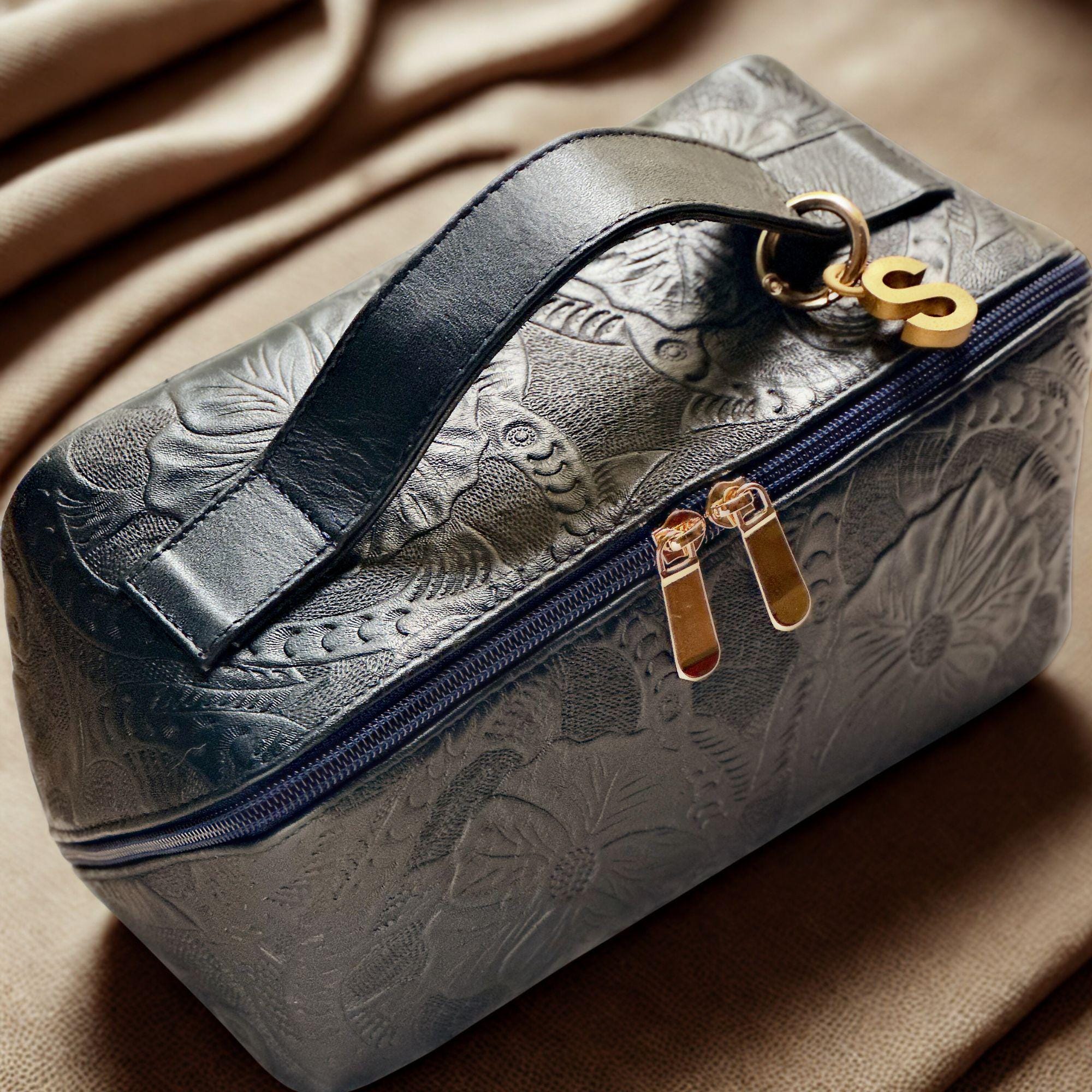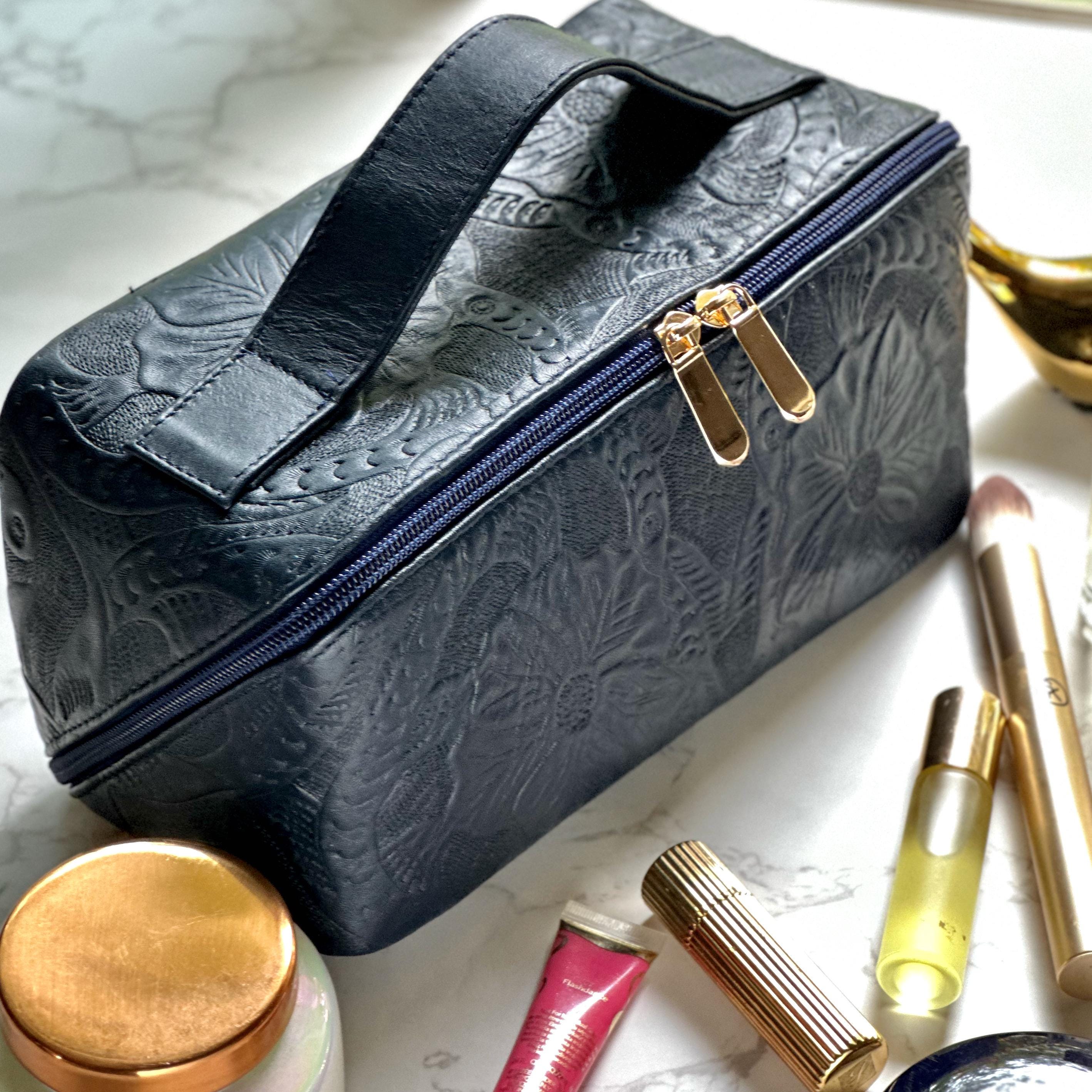 Ready to upgrade your routine? This floral-embossed leather makeup bag is roomy, travel-ready, and totally giftable - because beauty deserves better storage.