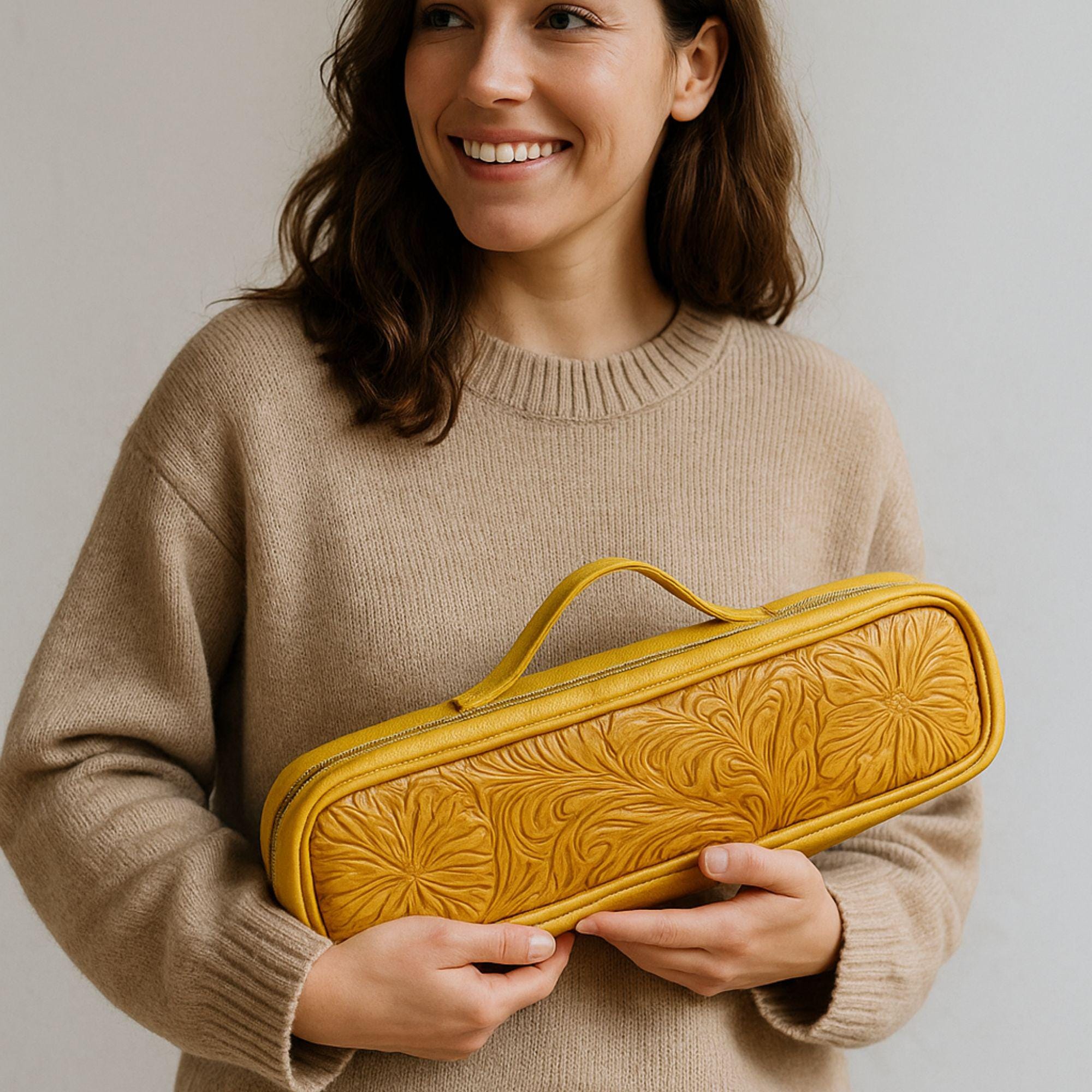 Looking for the perfect personalized gift for her? This heat-resistant leather travel case is designed to keep curling irons, flat irons, and hair tools safe while on the go. Crafted from sustainable leather, this stylish boho organizer is both practical and eco-friendly—perfect for the hair enthusiast or professional stylist in your life. Add a personal touch with custom engraving to make this travel case truly unique!