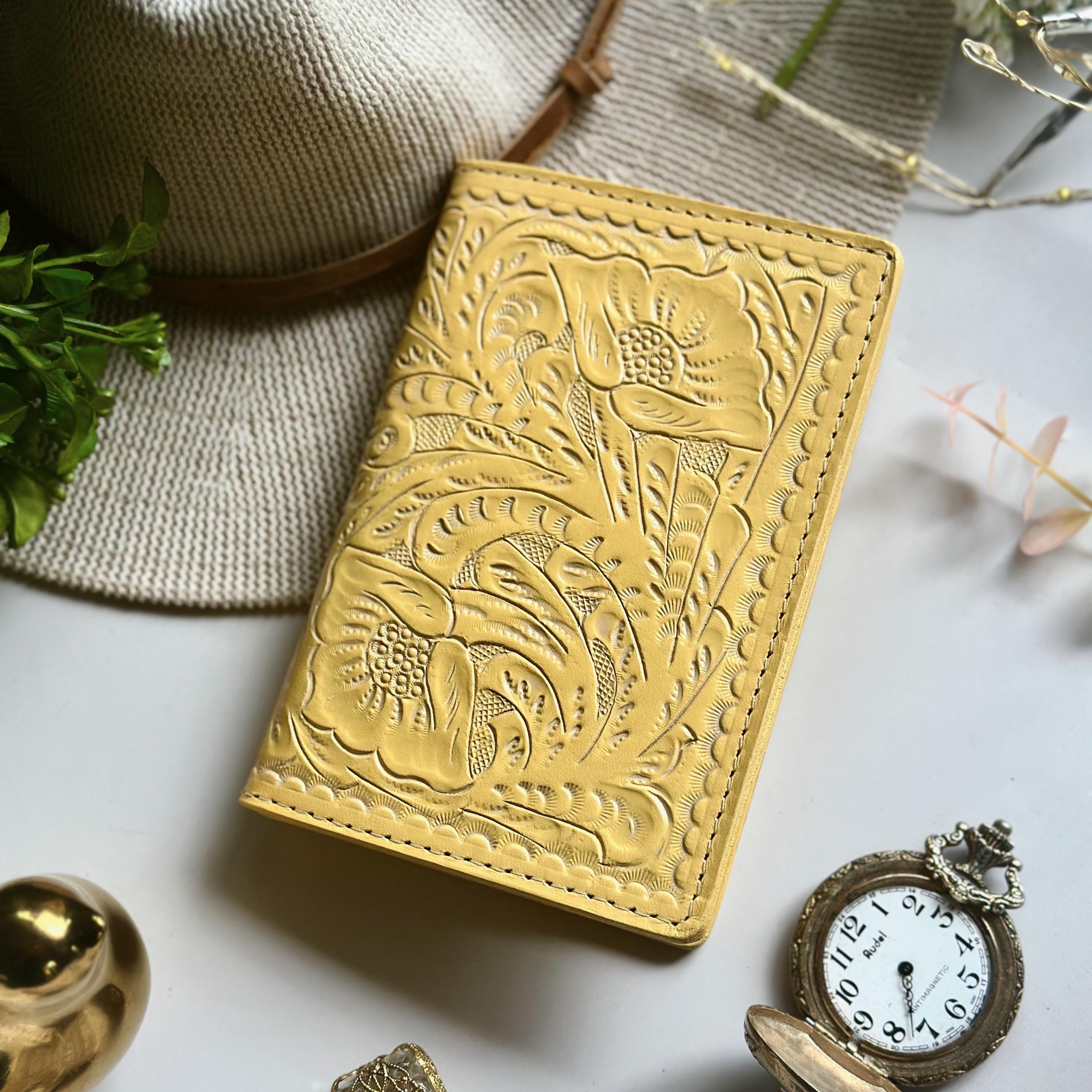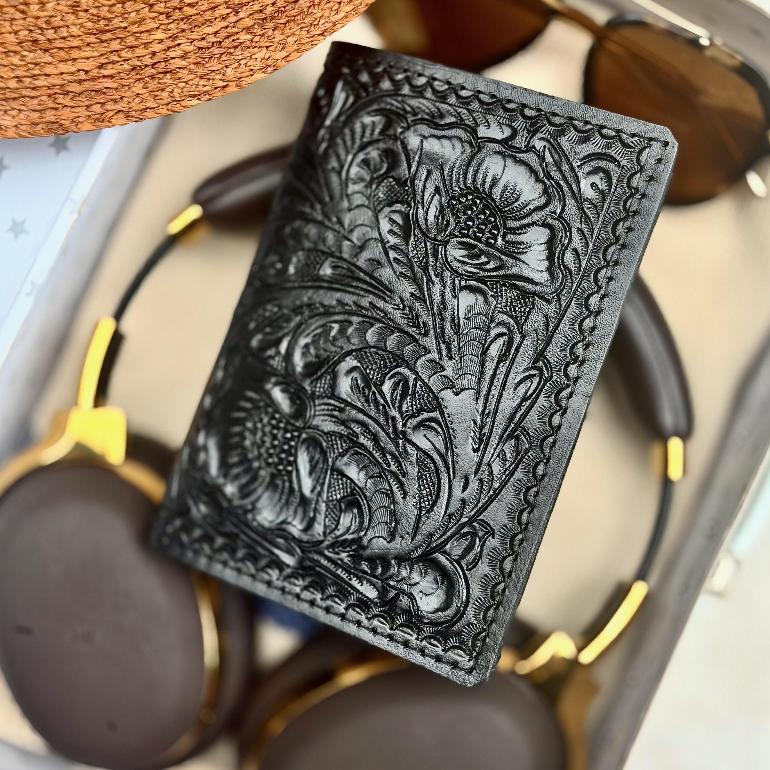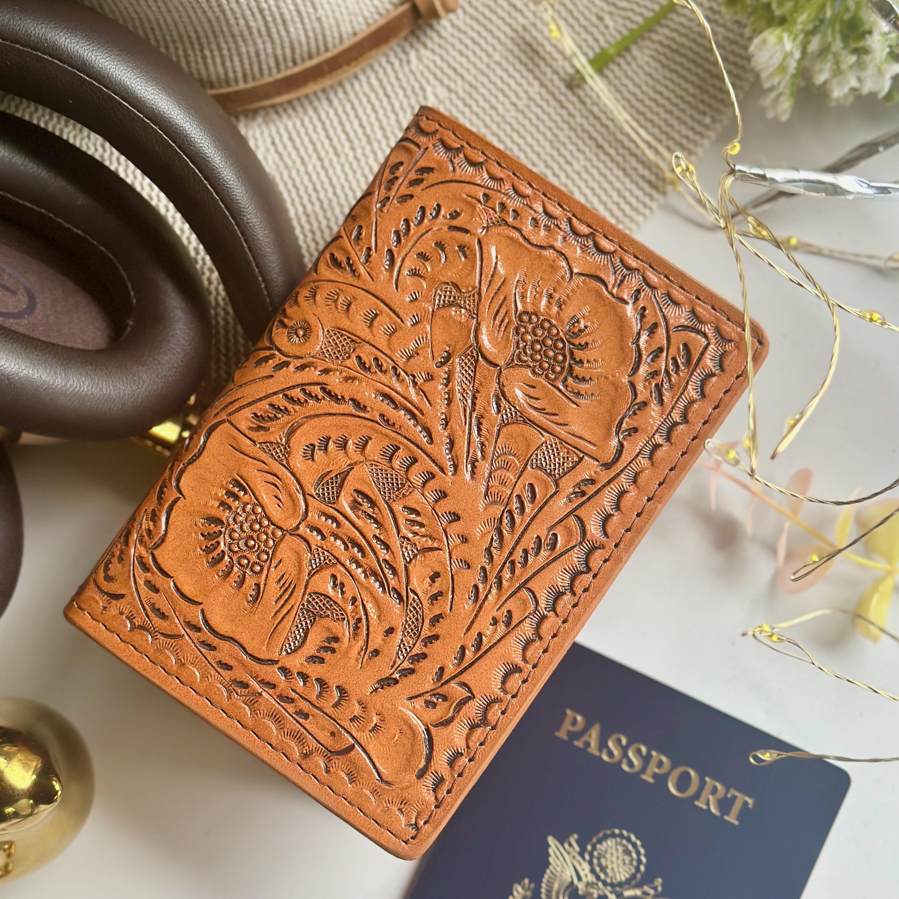 Travel in style with our Handmade Tooled Leather Passport Cover with AirTag Pocket