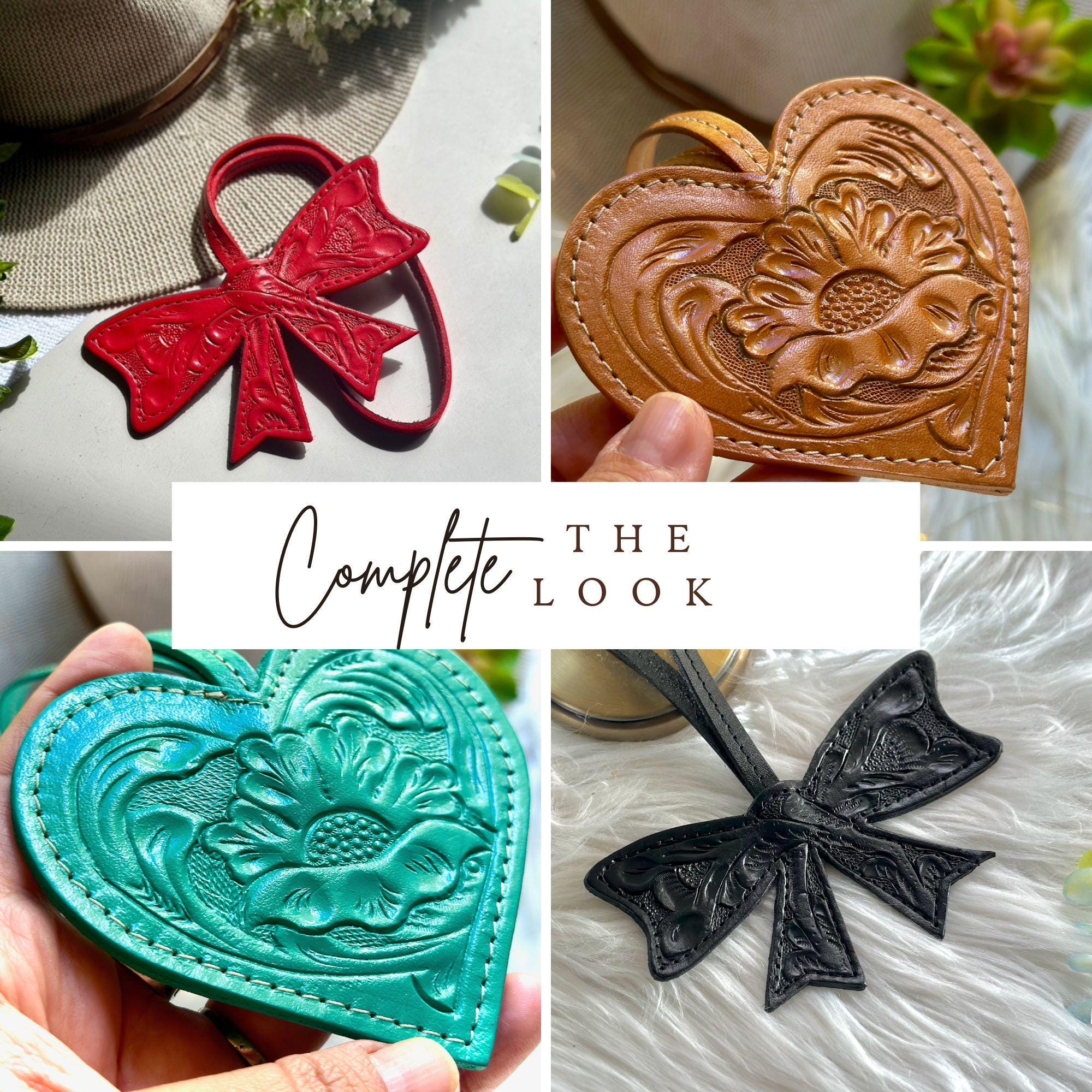 Want the perfect match? Add a hand-tooled leather luggage tag for a coordinated look.