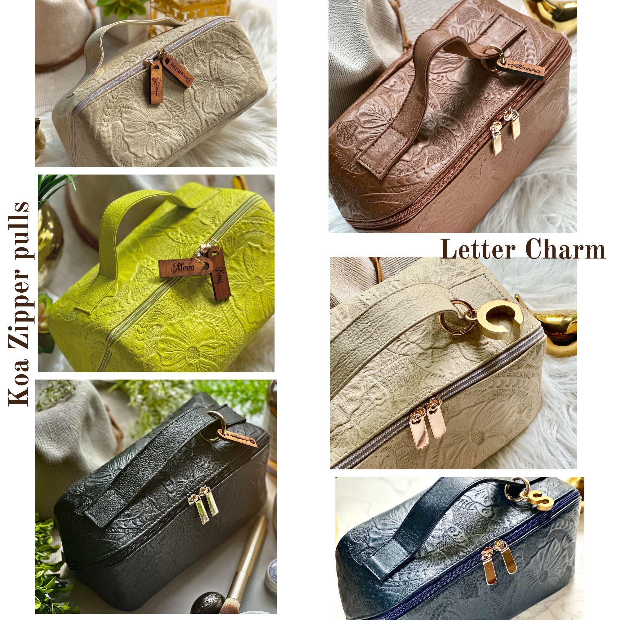 This large leather makeup bag is handmade just for you - complete with a cleanable lining, multiple compartments, and the option to personalize it with an initial or letter charm. Whether it’s for your best friend, girlfriend, or yourself, it’s the kind of gift they’ll use every day and love for years.