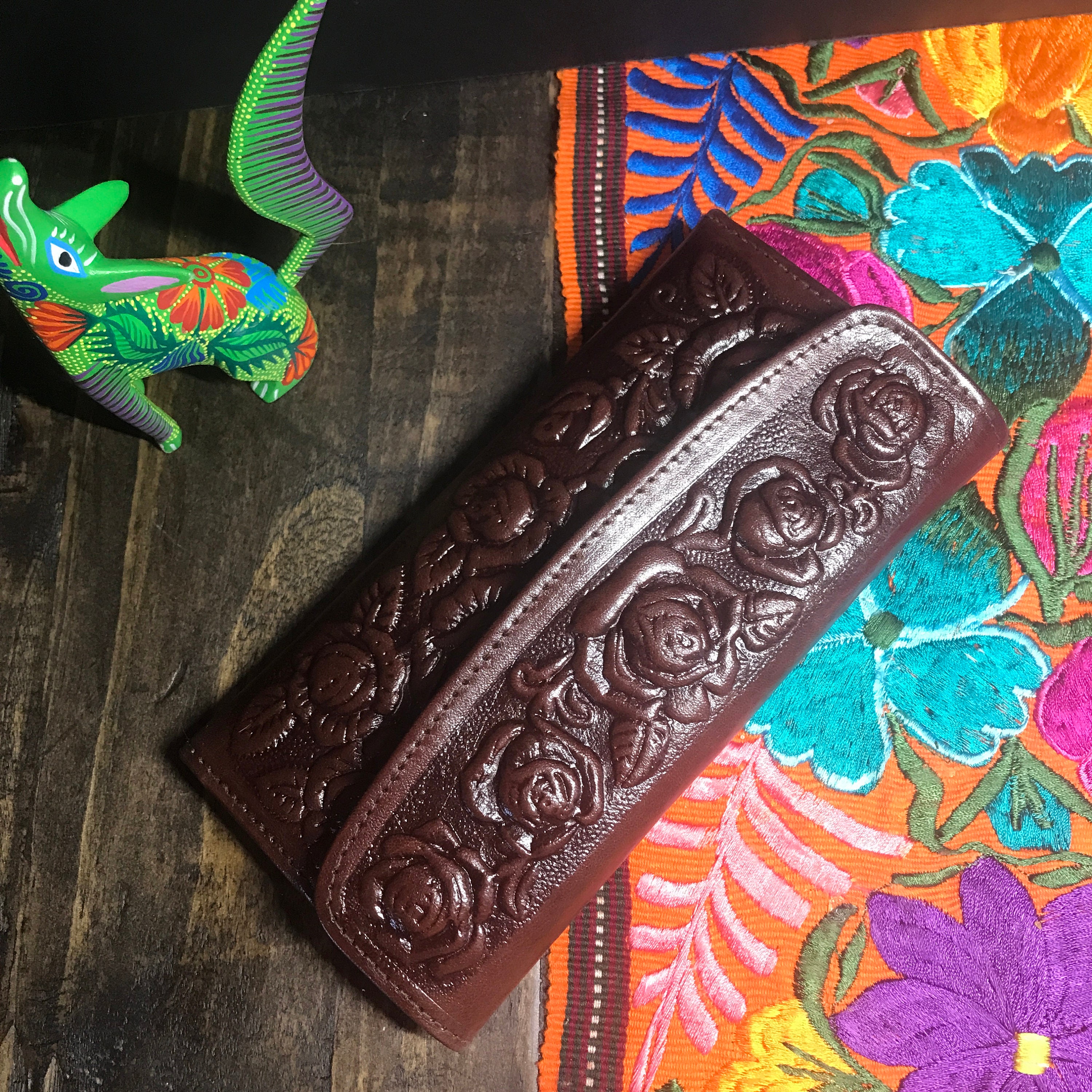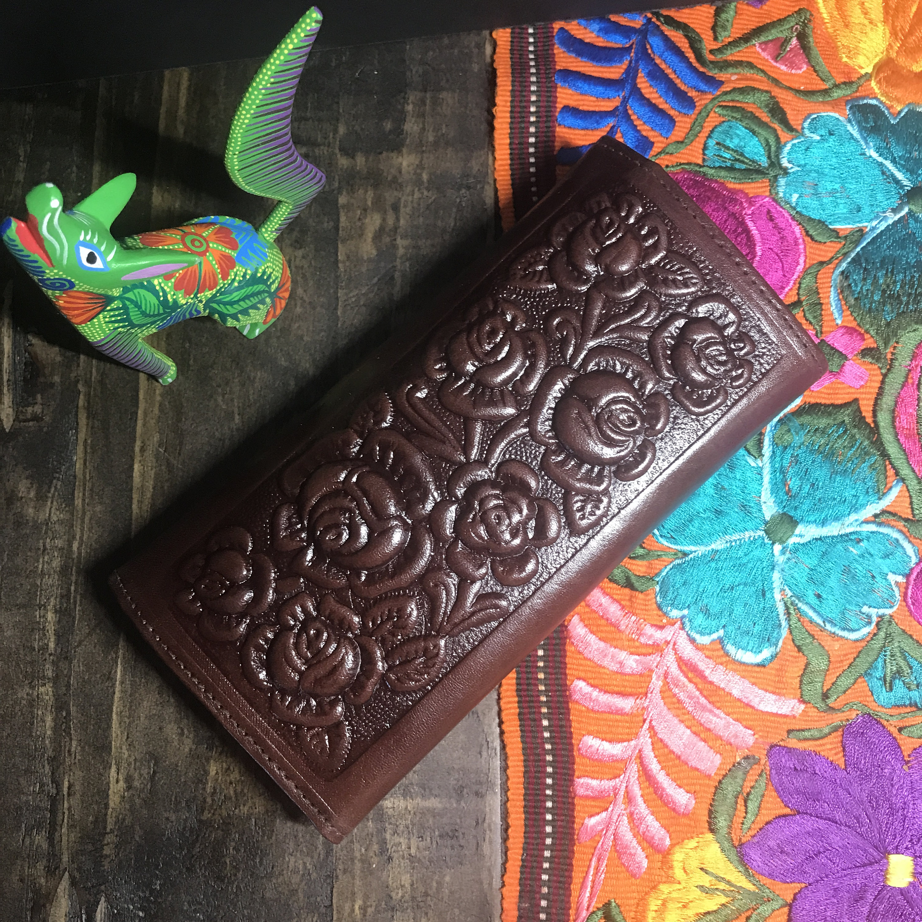Women's Wallet, Carved Leather Wallet. Tooled Wallet, Hand Tooled, Genuine Leather, Goat Leather, Sunflower Wallet, Bohemian Wallet, Vintage Style Wallet.