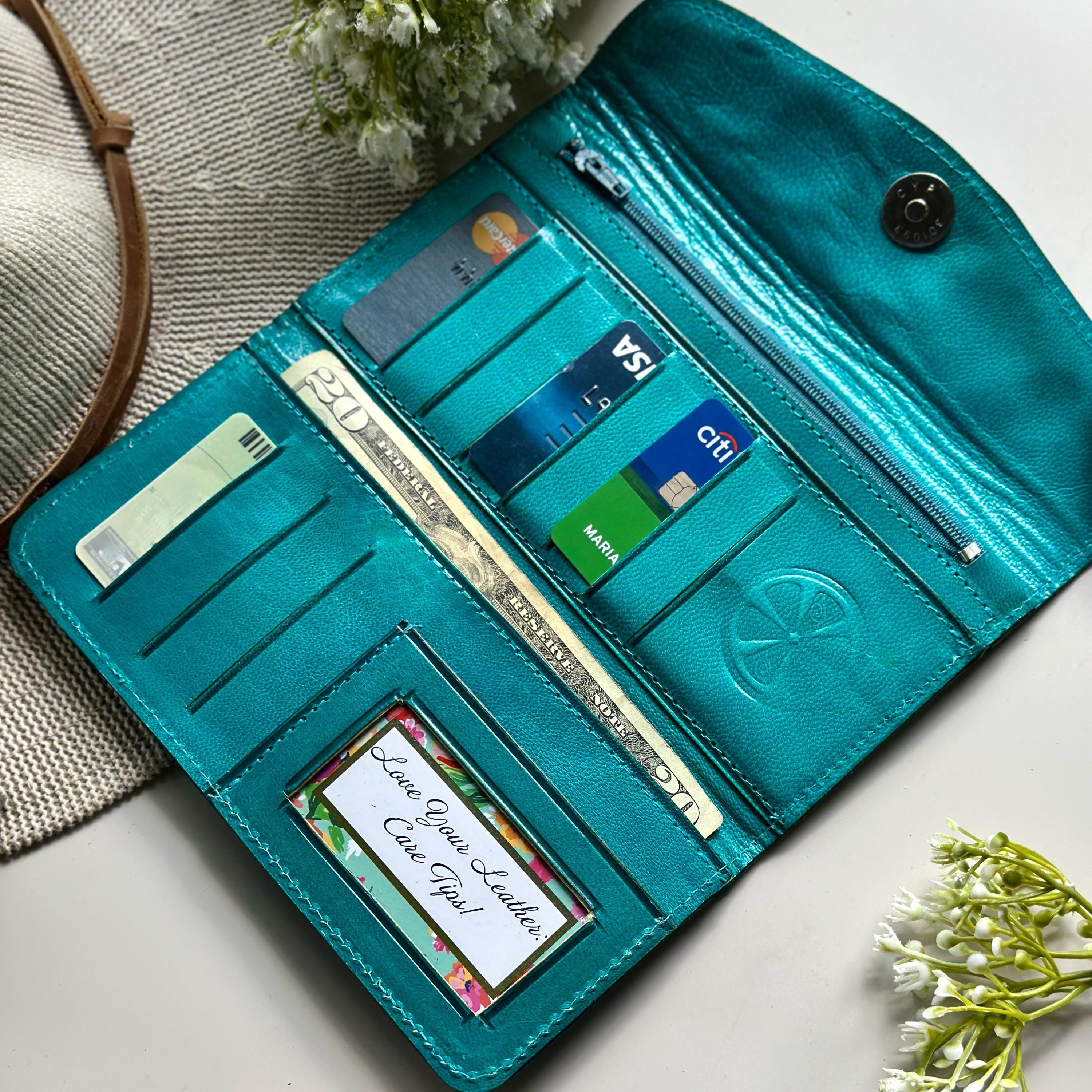 A slim leather wallet for women who love vintage charm and thoughtful details.