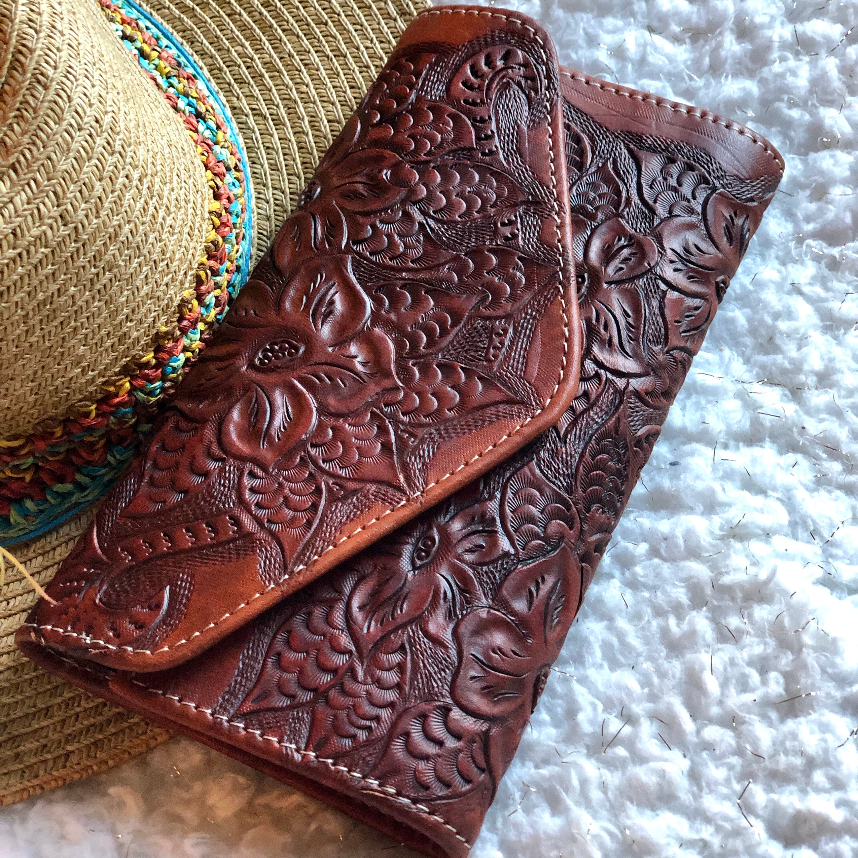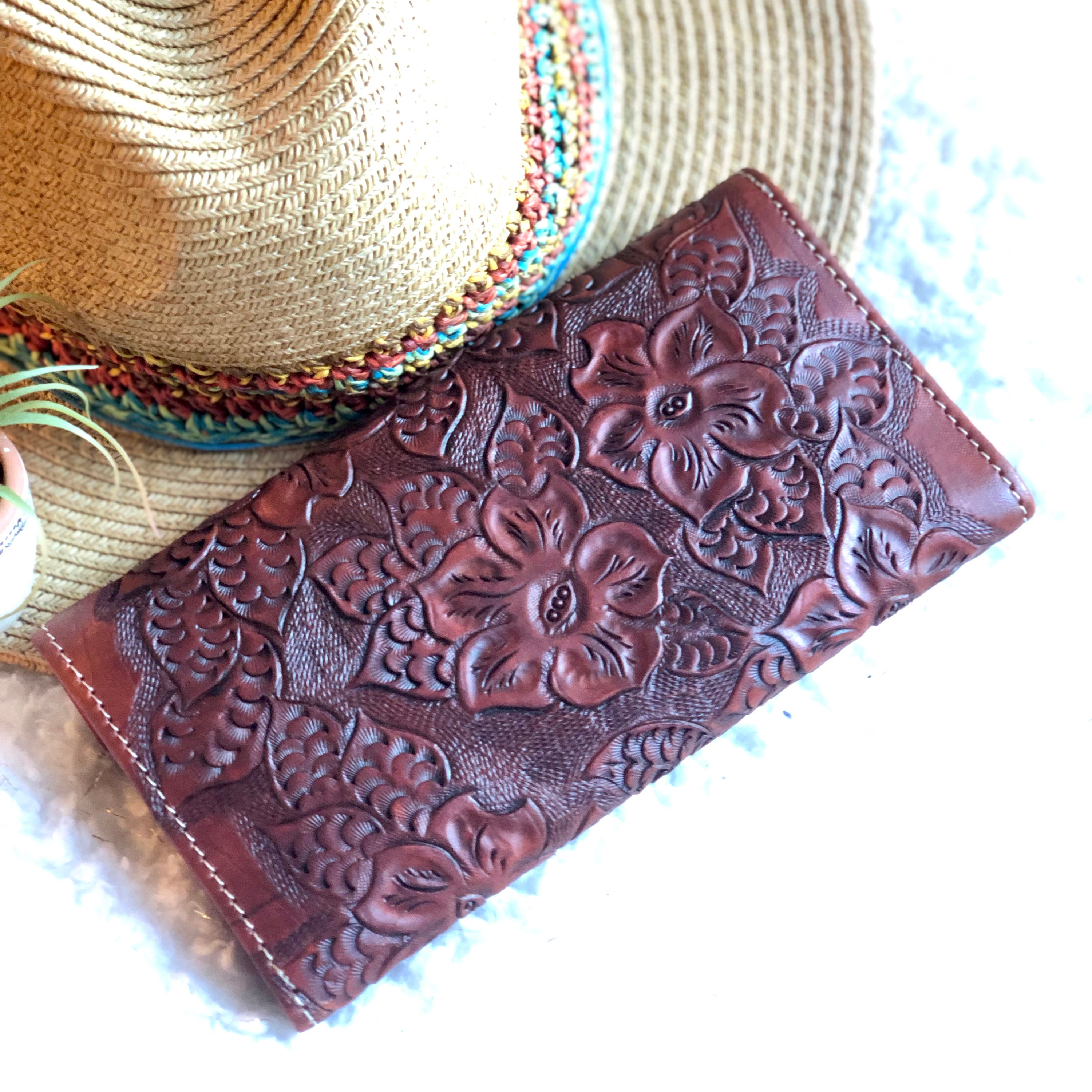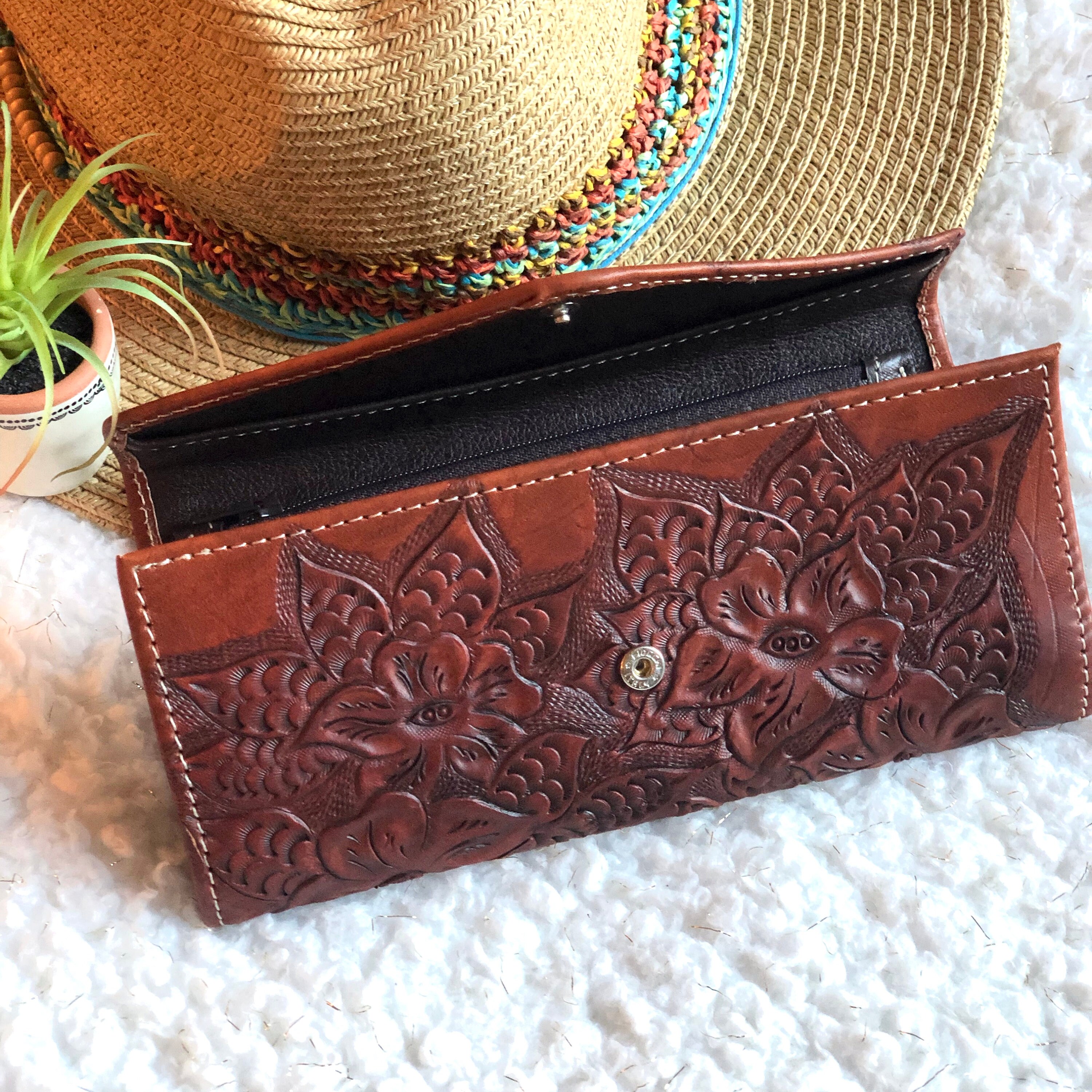 Tooled Leather Wallet*Handcrafted Wallet*Leather Woman Wallet*Flowers Wallet* Western Style Wallet*Birthday Gift for Women*Bifold Wallet