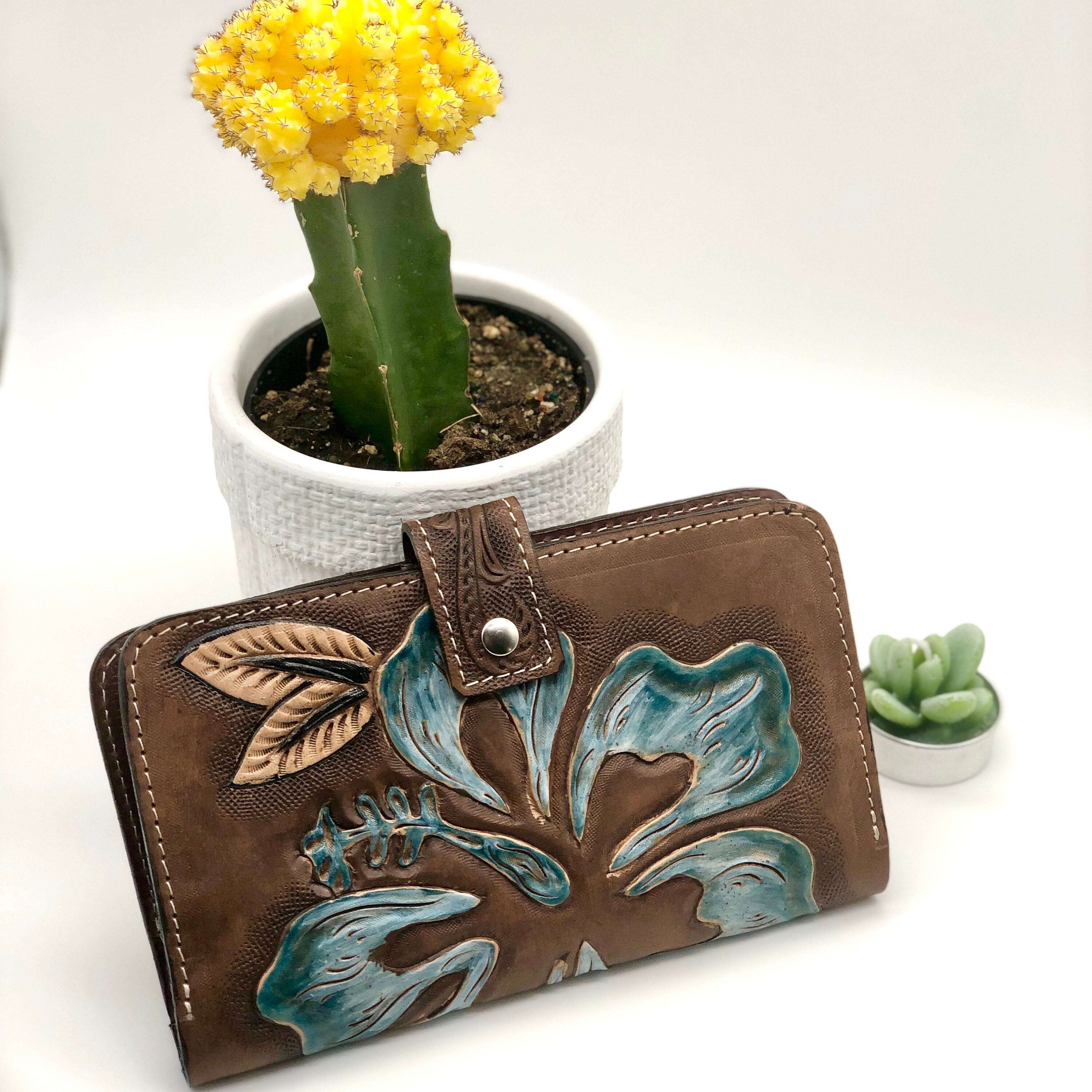 Tooled Leather Wallet*Handcrafted Wallet*Leather Woman Wallet*Flowers Wallet* Western Style Wallet*Birthday Gift for Women*Bifold Wallet* Cowgirl Style* Western Fashion*Texas Style.