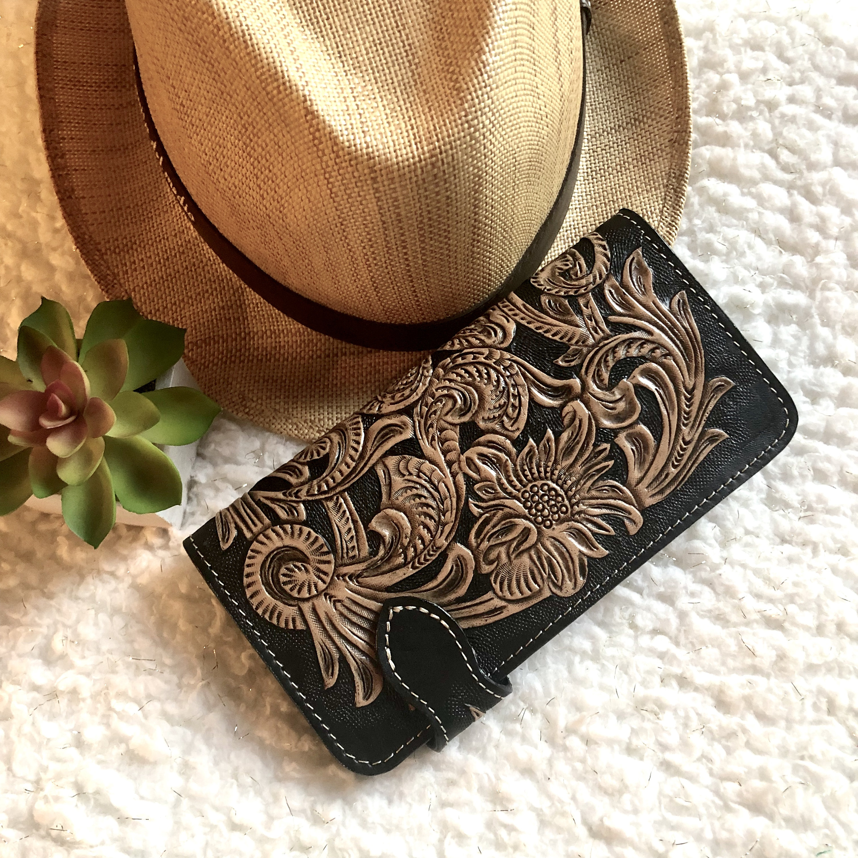 Tooled Leather Wallet*Handcrafted Wallet*Leather Woman Wallet*Flowers Wallet* Western Style Wallet*Birthday Gift for Women*Bifold Wallet* Cowgirl Style* Western Fashion*Texas Style.