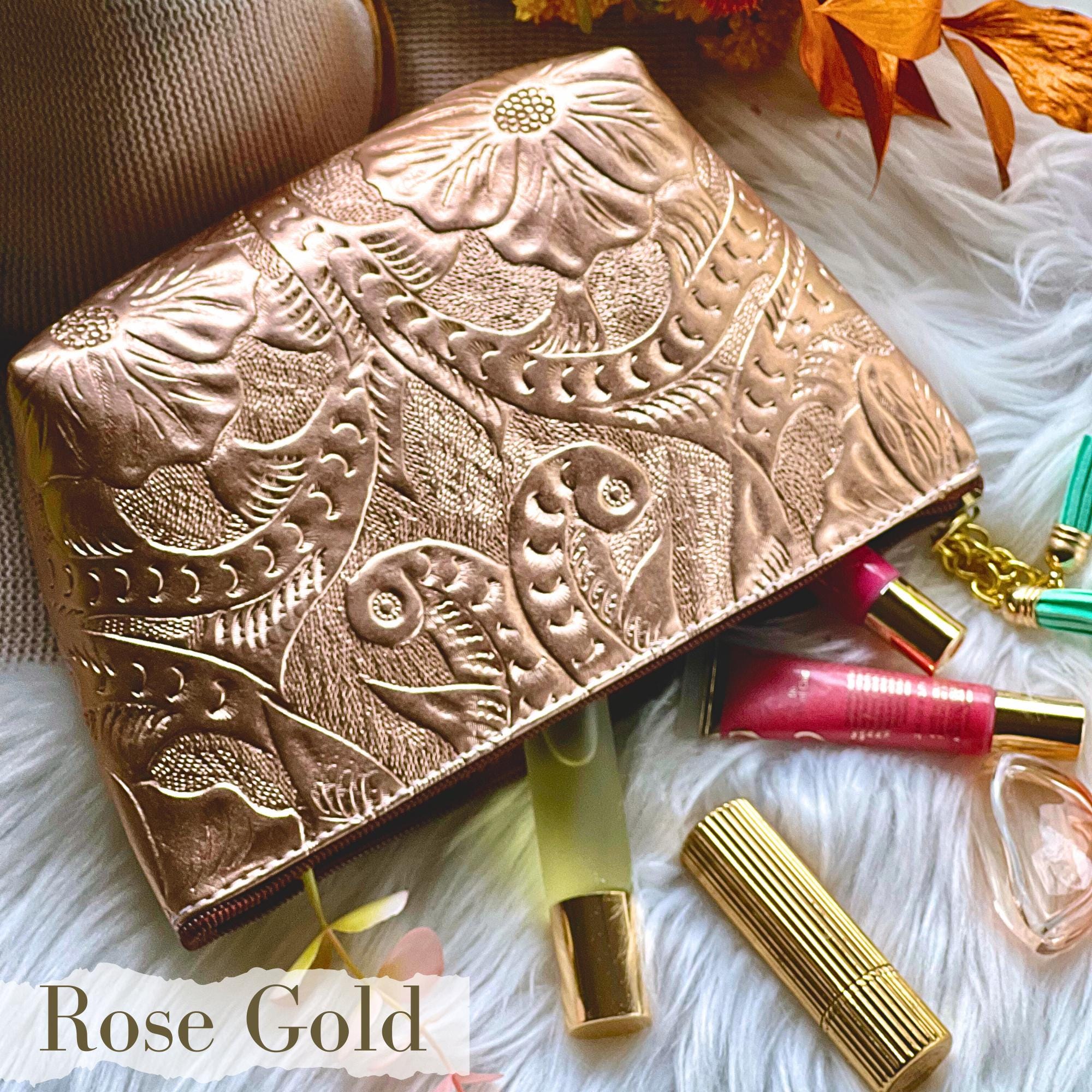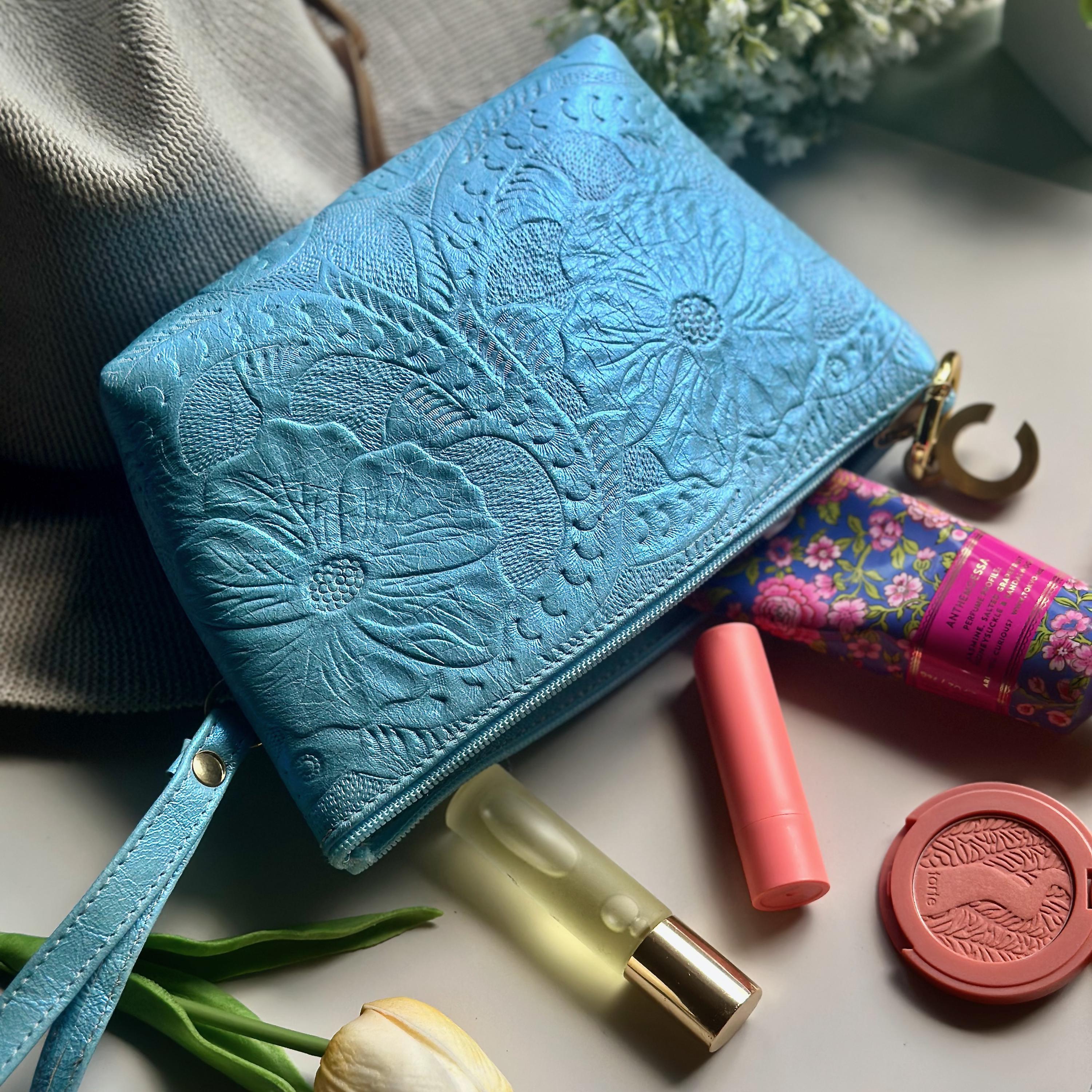 This handcrafted leather makeup bag is floral, boho, and made to be personalized—perfect for travel, gifting, or treating yourself. Whether it's for a bridesmaid, best friend, or your honeymoon, it’s beauty and function in one timeless pouch.