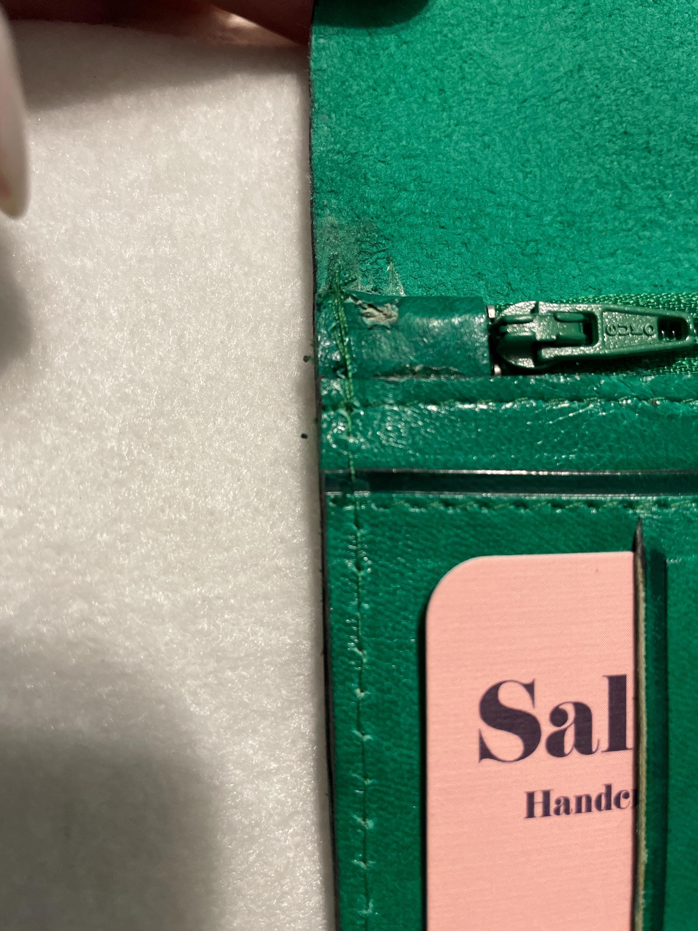 The wallet was shipped promptly and carefully. I must say I am not happy with my purchase. I understand leather may vary and have different markings and textures, but my wallet unfortunately had a VERY worn spot/tear at a seem inside the wallet. I was saddened that someone did not notice this obvious blemish during inspection. The wallet is a beautiful color and extremely soft. I am disappointed in this experience, however.