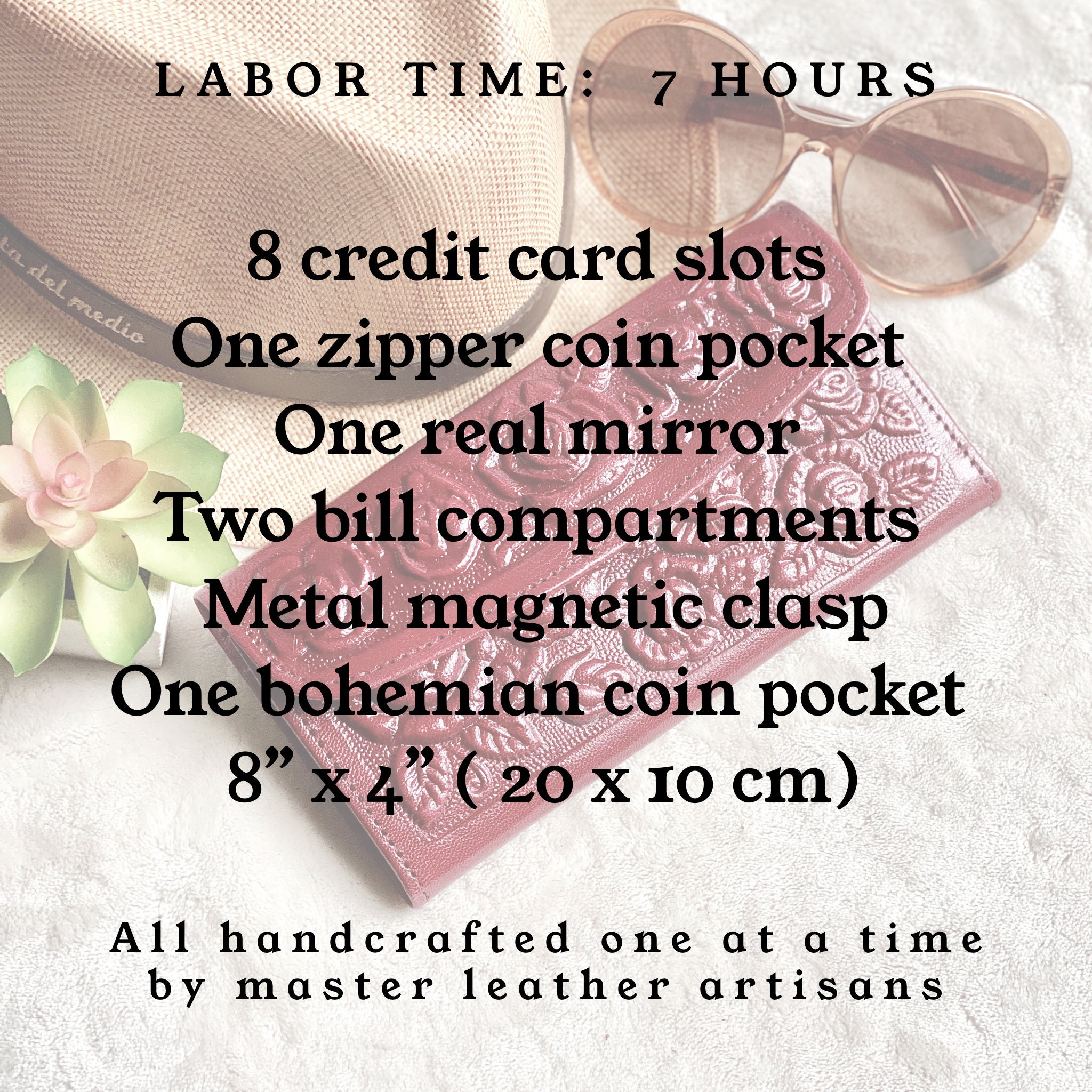 Because items are handmade, each leather wallet will respond to coloring slightly different.