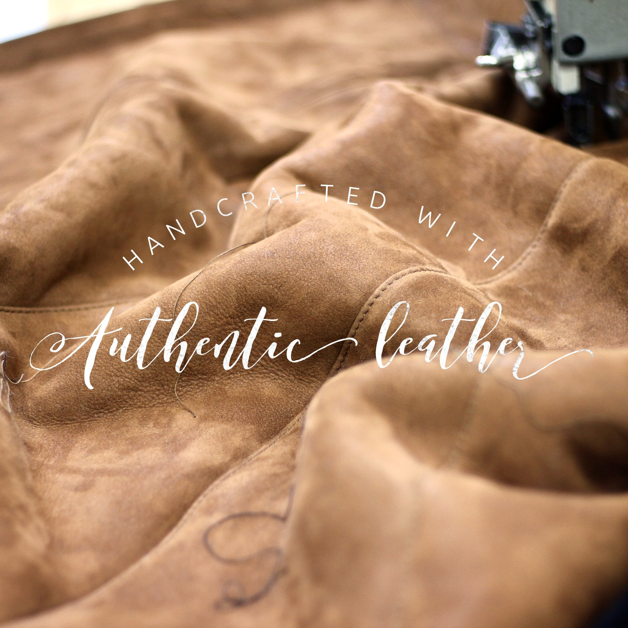 Our pieces are made with real, sustainable leather—so just like us, they’re not big fans of water.
