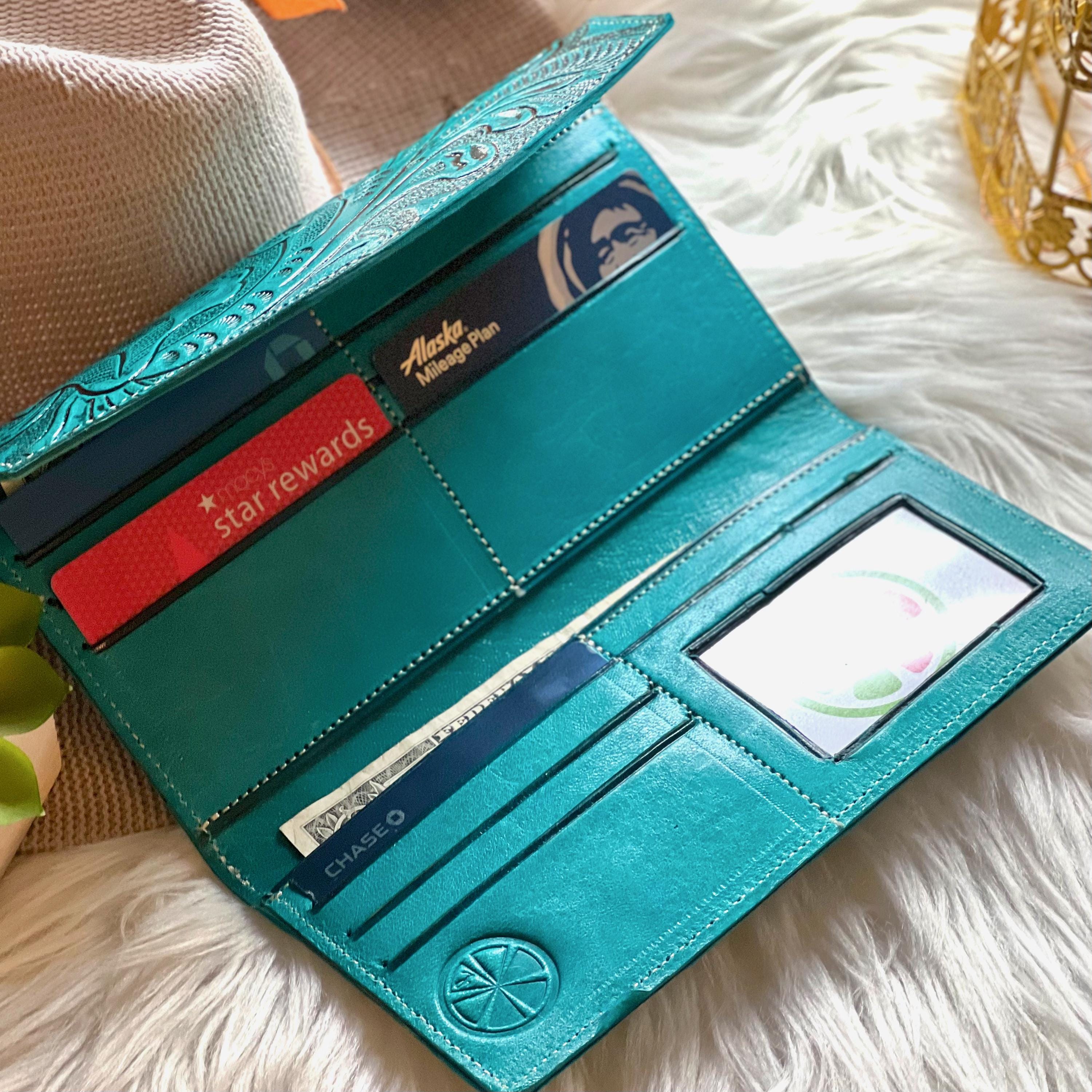 This wallet is BEAUTIFUL!!! I purchased it as an early Christmas gift. My Mother-In-Law recently went into Hospice care, and I figure we may need to do an early Christmas this year, and this wallet is perfect for her!! She loves all things western and teal and she loves to shop, so this was no contest!! It arrived sooner than expected, and the packaging was top of the line! Absolutely love everything about this, and even ordered a second wallet for my Mom for her upcoming birthday.