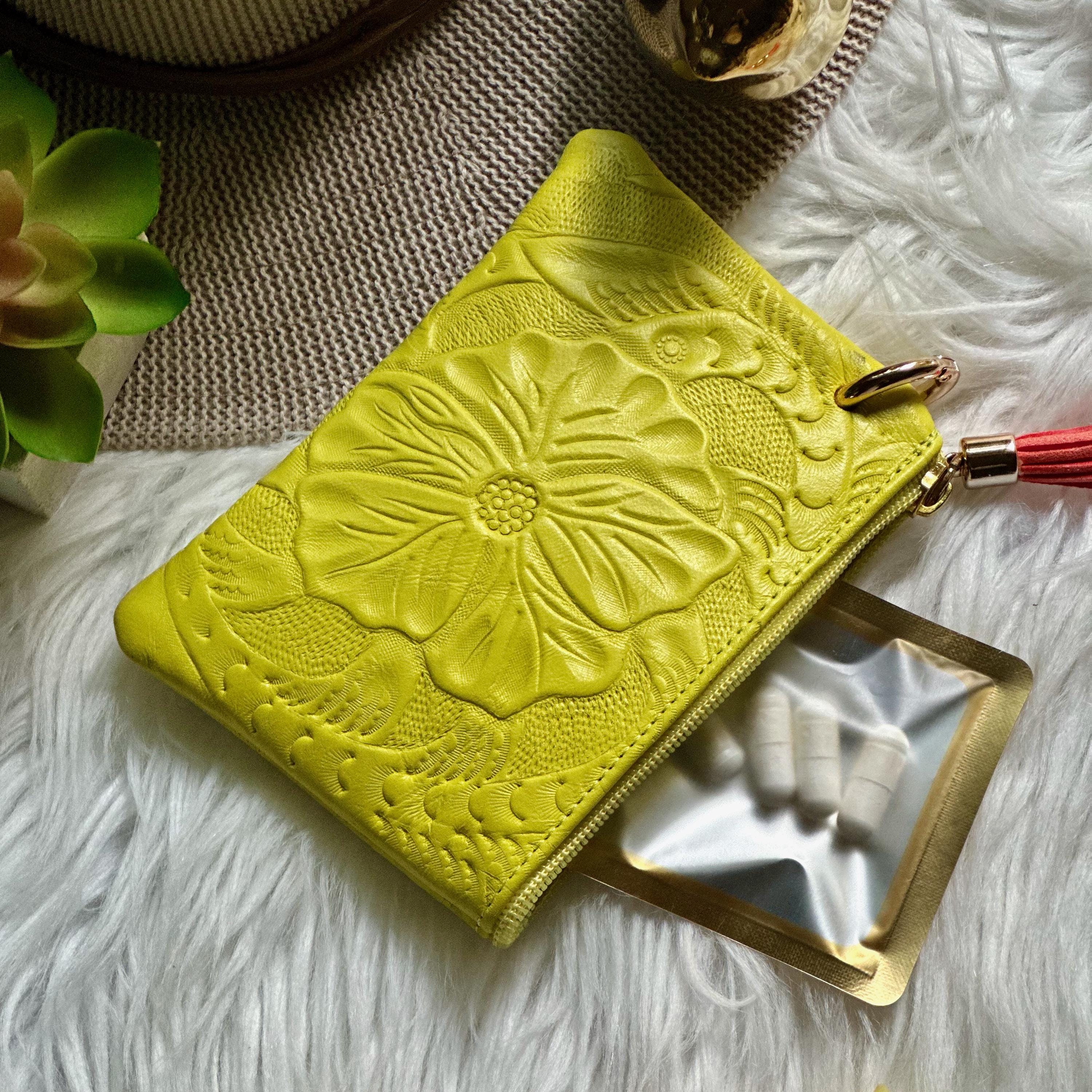⢠Soft, genuine sustainable leather with floral embossing