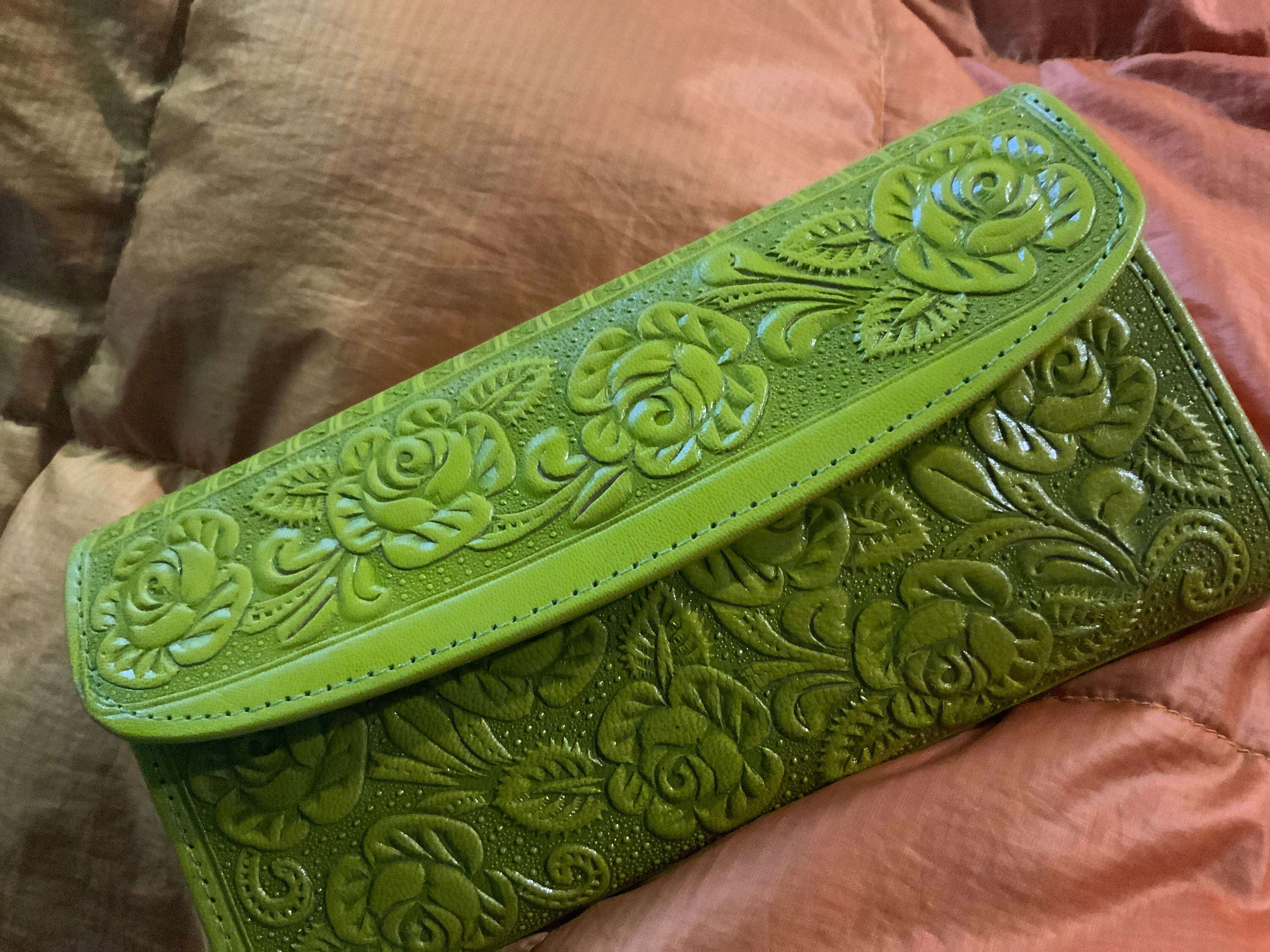 Chartreuse fun leather wallets - leather wallets for women- gifts for her - floral wallets - women wallets leather