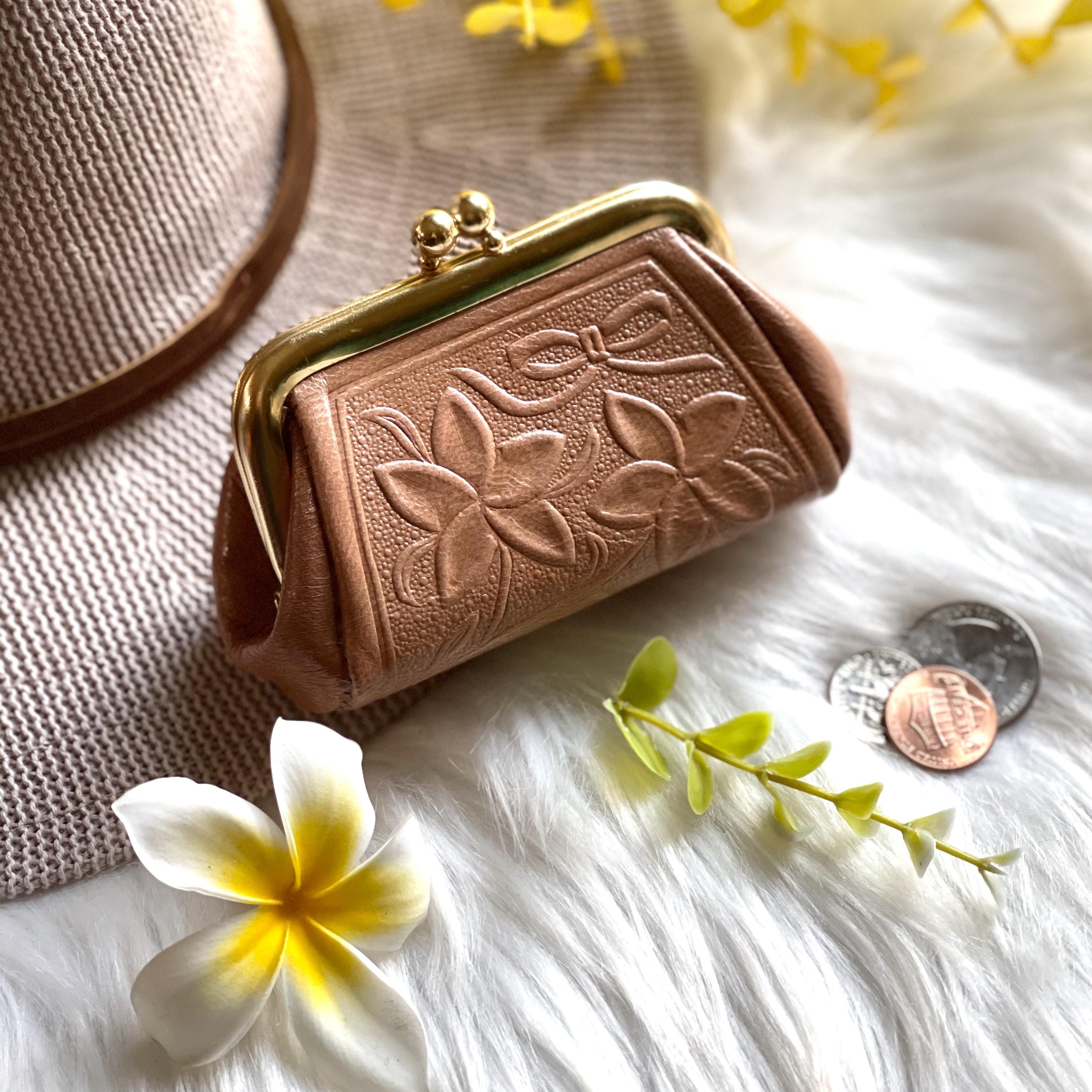 Cute vintage elegance with our handmade leather coin purse, featuring delicate embossed plumeria flowers. This clasp coin purse is a timeless accessory, blending vintage charm and functionality. A perfect gift for her, our plumeria coin purse offers both style and utility, adding a touch of classic sophistication to your essentials. Discover the allure of our kiss lock coin pouch- a thoughtful vintage-style addition to any collection