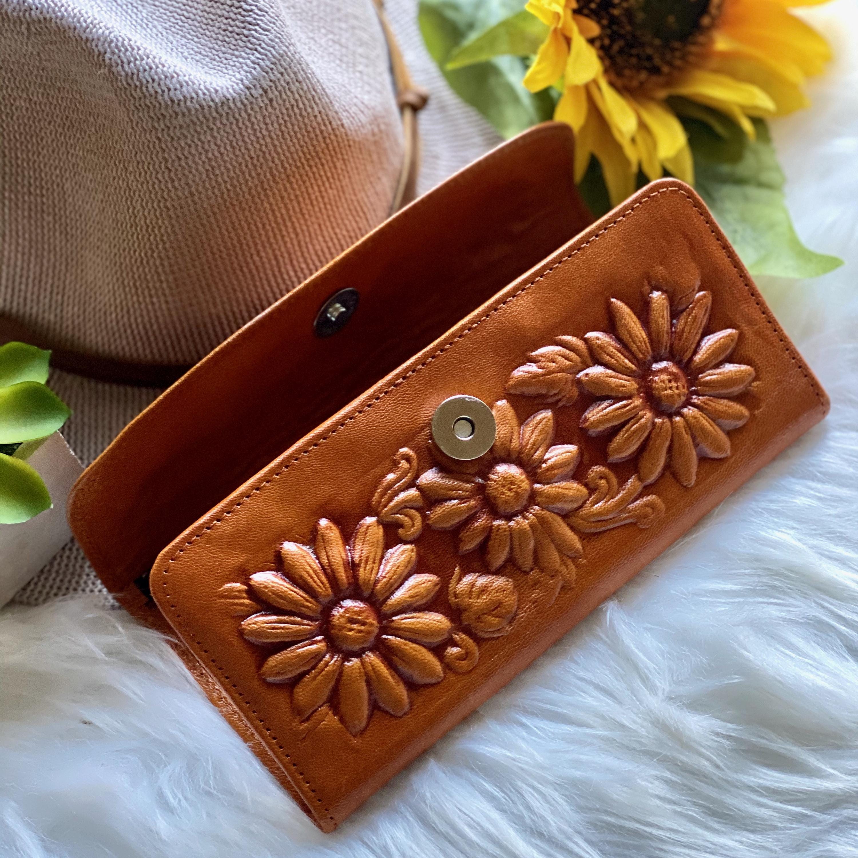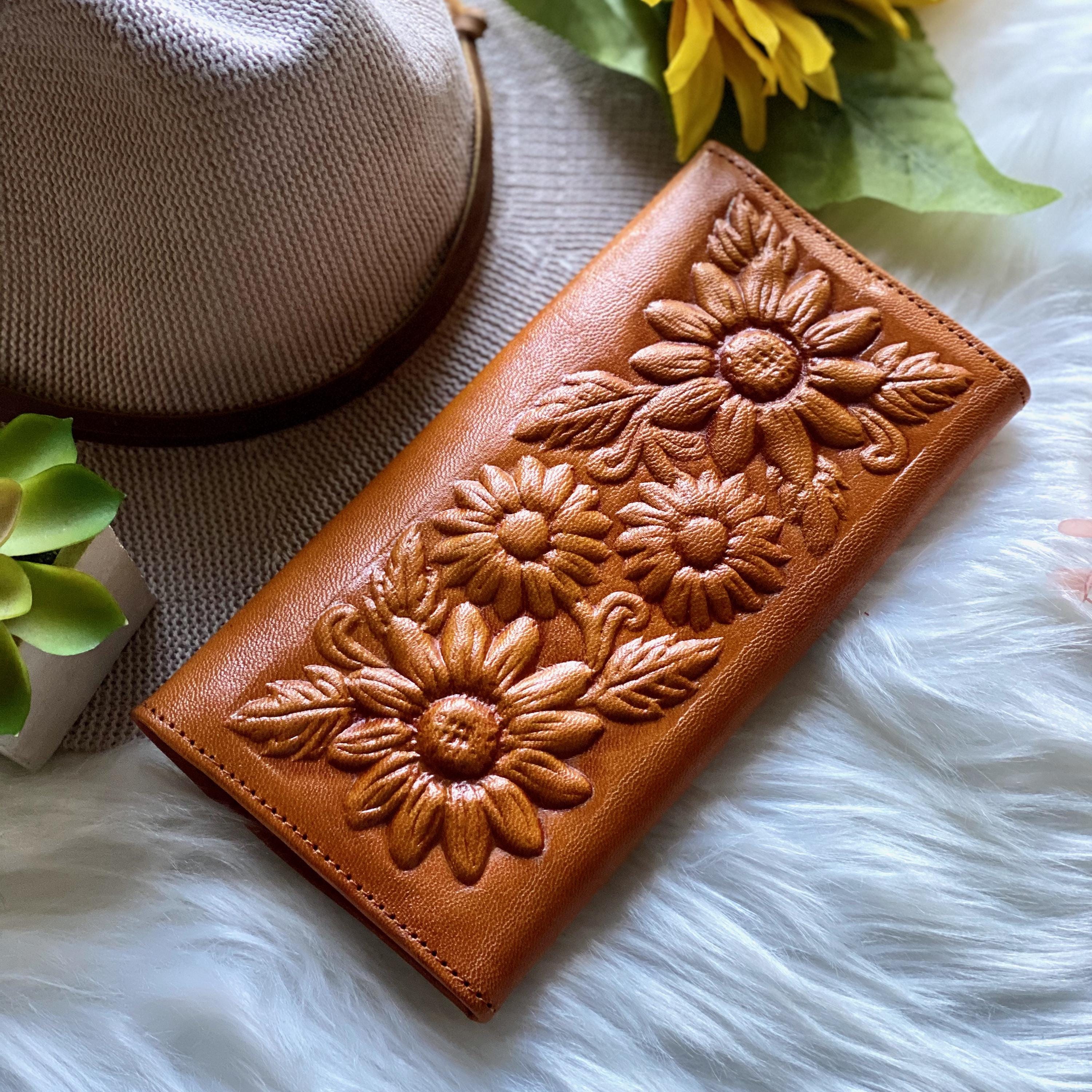 Adorned with charming embossed sunflowers, our cottagecore- inspired leather wallet for women is the perfect cute gift for her!