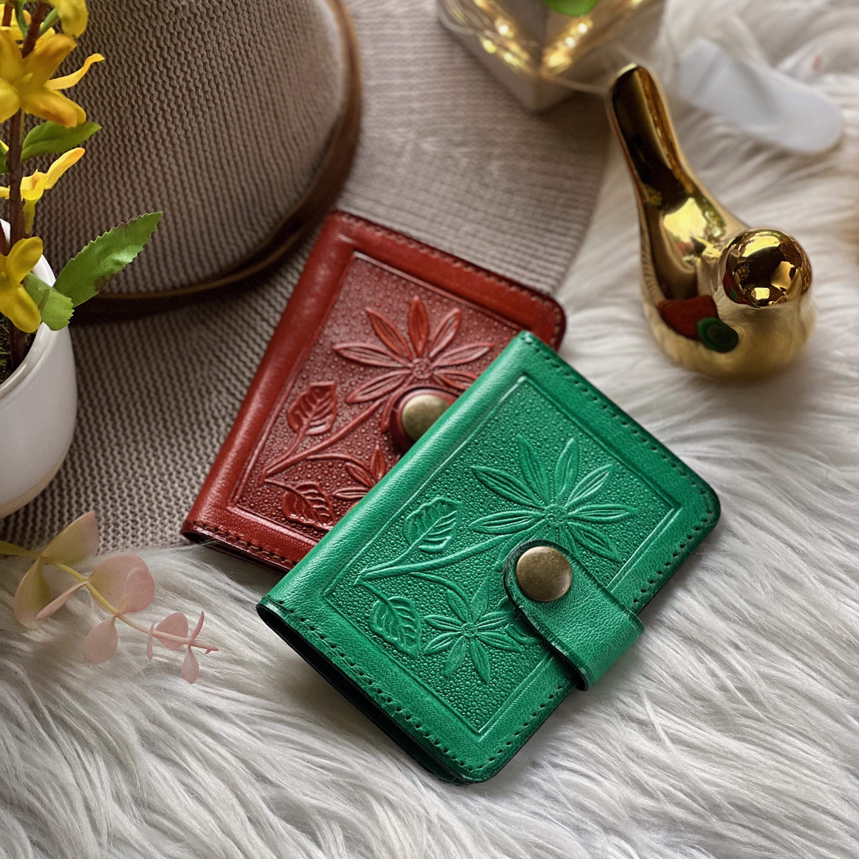 This slim handmade leather card holder is designed for women who love small, beautiful things that do their job well. Crafted from sustainable goat leather, it keeps your essential cards organized while staying lightweight, compact, and easy to carry.